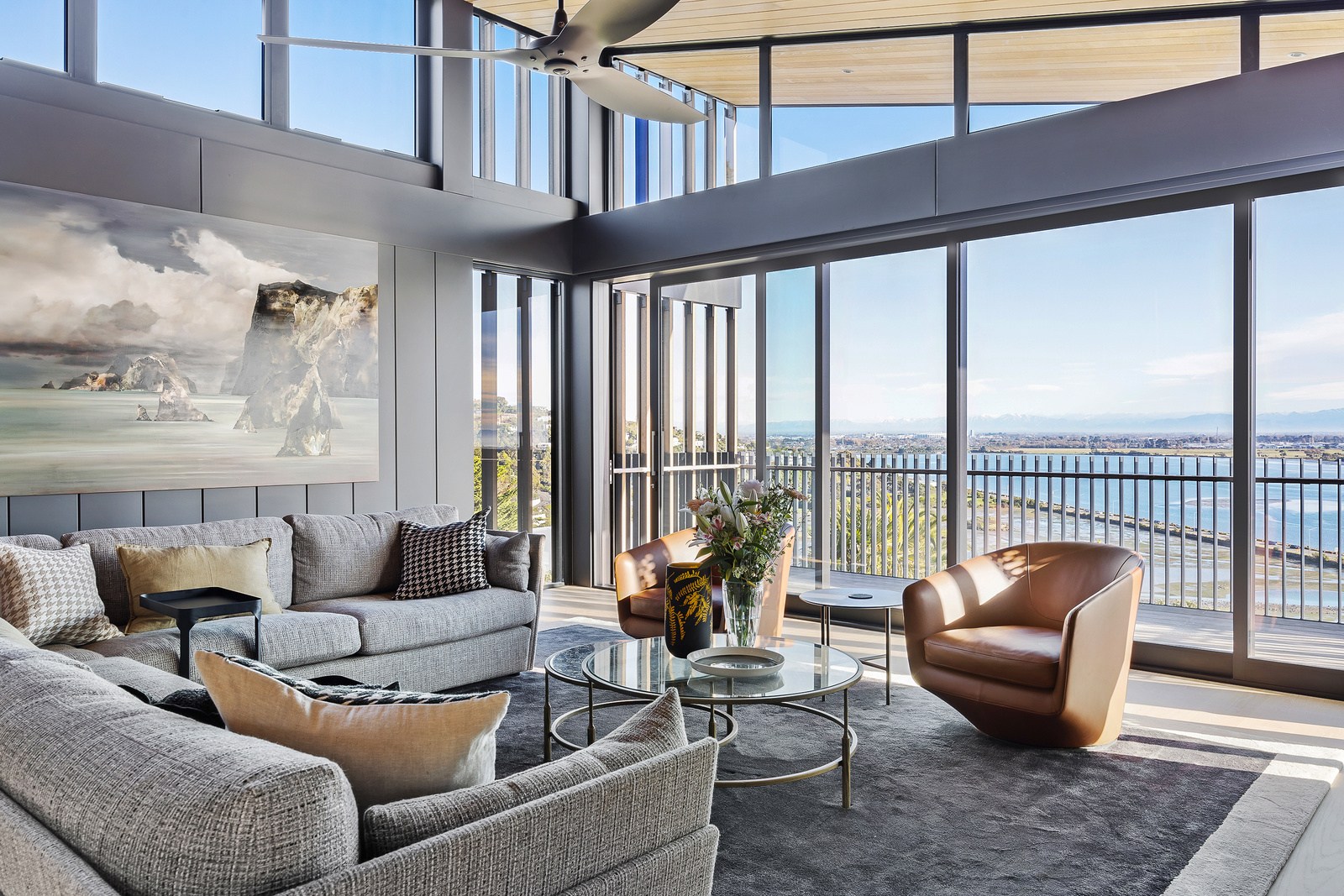 Built for clients returning to the area after the 2011 earthquakes, this remarkable residence honours both place and permanence. Just a stone’s throw from their former, red-zoned site, the new home was conceived to feel deeply rooted in its environment — materially, spatially and emotionally.