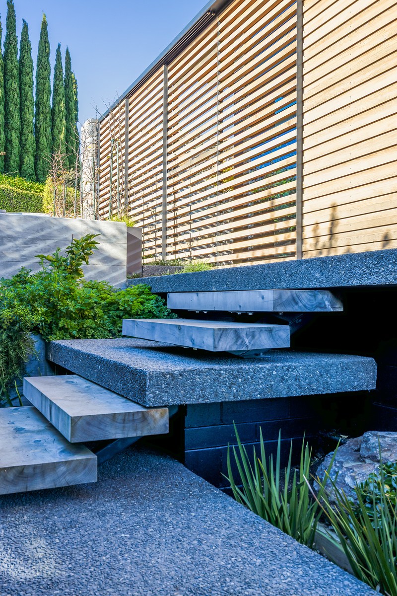 Seamless transitions between levels, expansive glazing and carefully screened outdoor spaces forge a continuous dialogue with the site. Outdoor terraces offer elevated views and protection from the elements, aided by integrated louvre systems. The technical demands of the steep site, from restricted access to complex structural requirements, were navigated by a skilled architectural build team. Every element has been considered, crafted and resolved to deliver a home that sits lightly but confidently on the land.