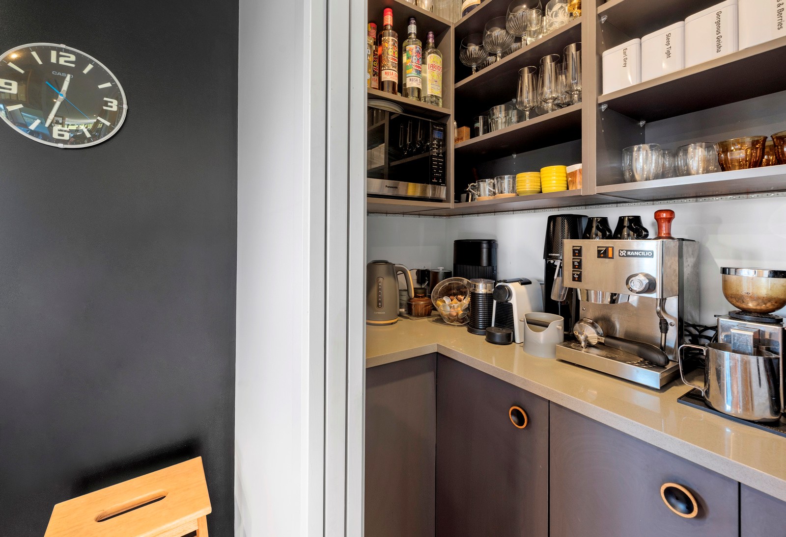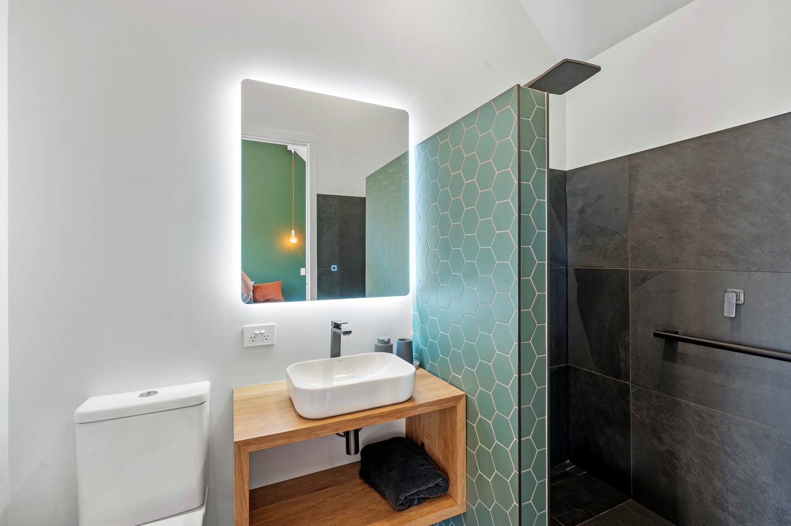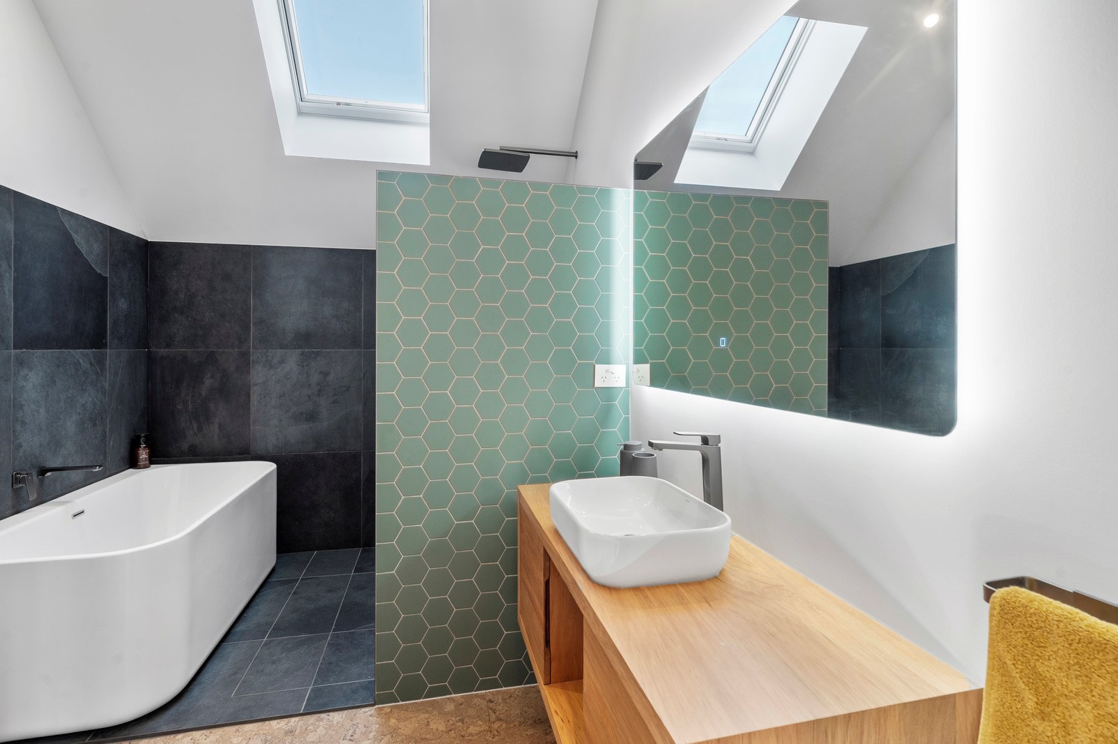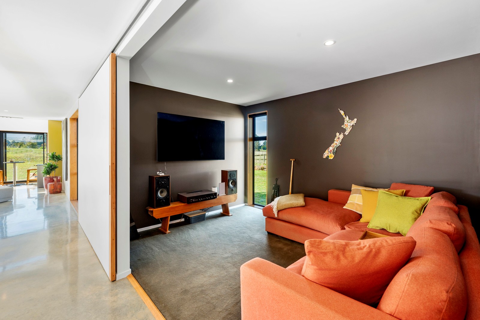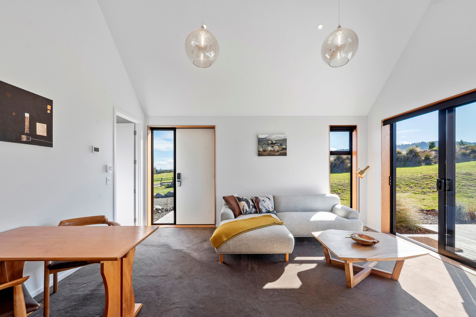 With four bedrooms, three bathrooms and a large open-plan communal space spread throughout the 315sqm floorplan, and three pavilions, there’s much to explore. On the ground floor, the kitchen spills into dining and living spaces which, in turn, open to a media room, as well as a verandah and patio. On this floor, you’ll find another lounge, office, utility room, powder room and a bedroom with ensuite. Head upstairs and three more bedrooms and a bathroom stretch along the elongated upper floor. Naturally, the main bedroom has a walk-in wardrobe and ensuite. In a property that’s an all-round achiever, the outdoor zone is a standout. Timber decking flows from the house, past a firepit and terminates just past a spa pool. Bliss under the mountain and starry night skies.