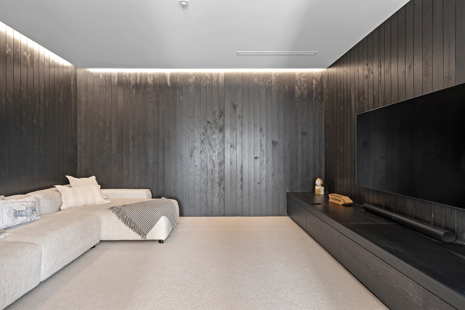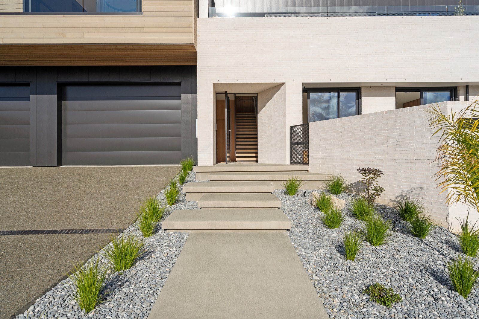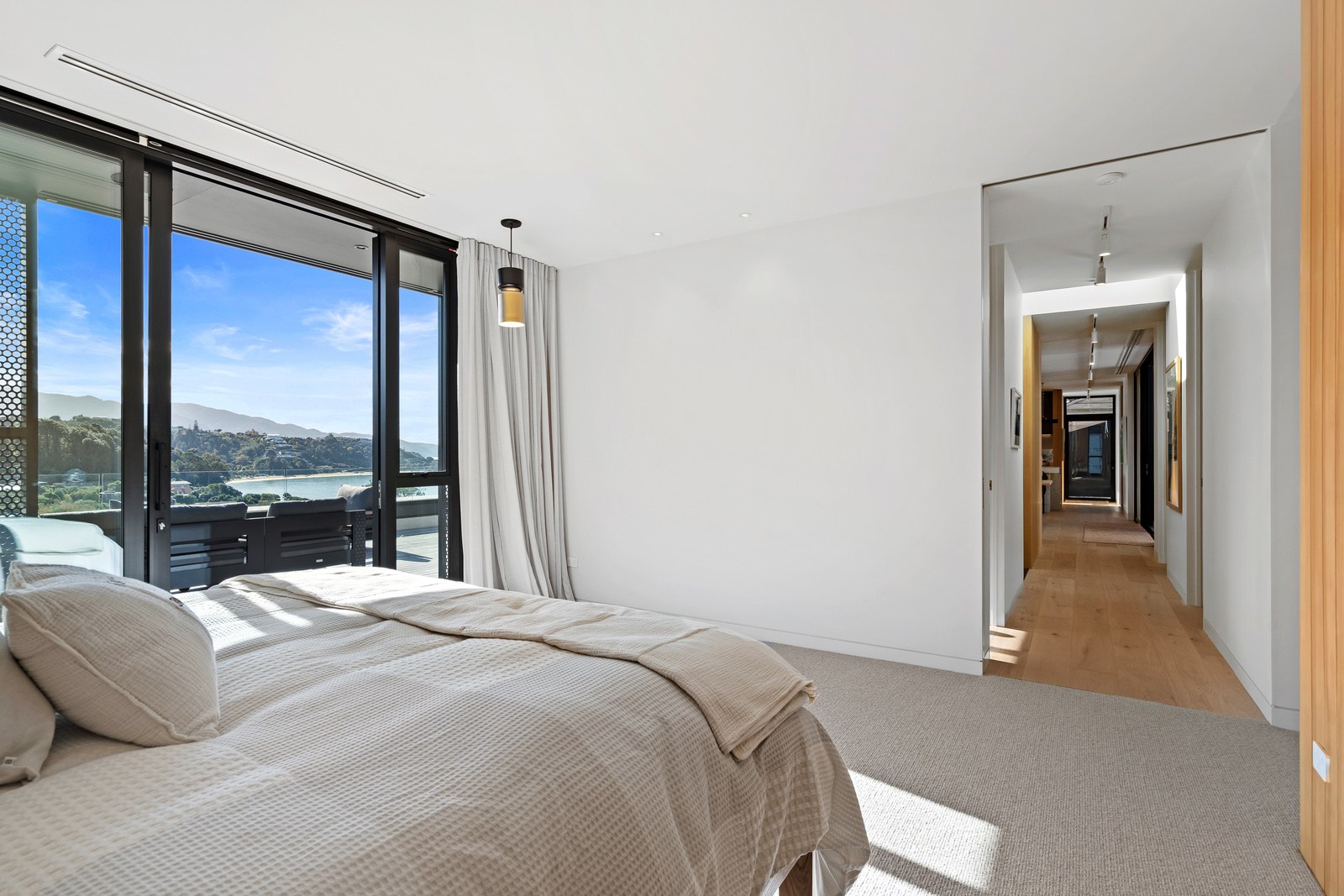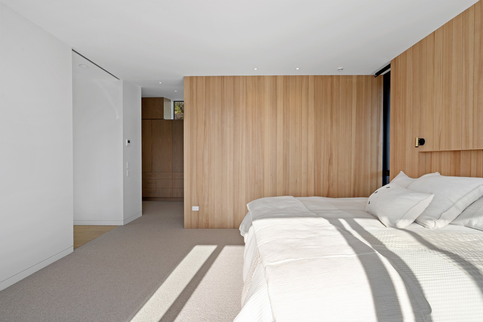 Embedded into a hill high above a beautiful gold-sand beach is this house that references hues of the coast. Custom bricks echo the colour of the sand, cedar cladding that mimics driftwood covers the cantilevered lookout and below is a dark box housing the garage. Of course, there is more to the 400sqm three-bedroom house — aluminium perforated screens that shelter a spa deck, for instance — but the materials all dovetail with each other and with the environment they inhabit. The owners enter through a pared-back cave-like opening on the ground floor. To the right is guest accommodation, including bedrooms, a bathroom, lounge and access to the inground swimming pool. You’ll also find three-car garaging. Turn left and the lift and stairs take you to the first floor and an astonishing variety of places to relax, no matter the weather.