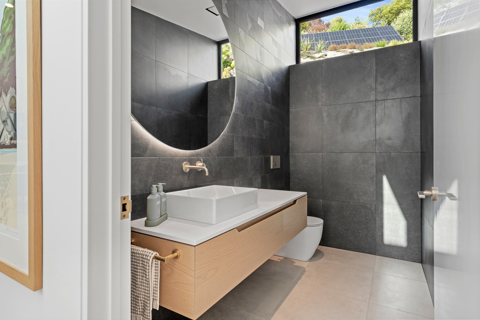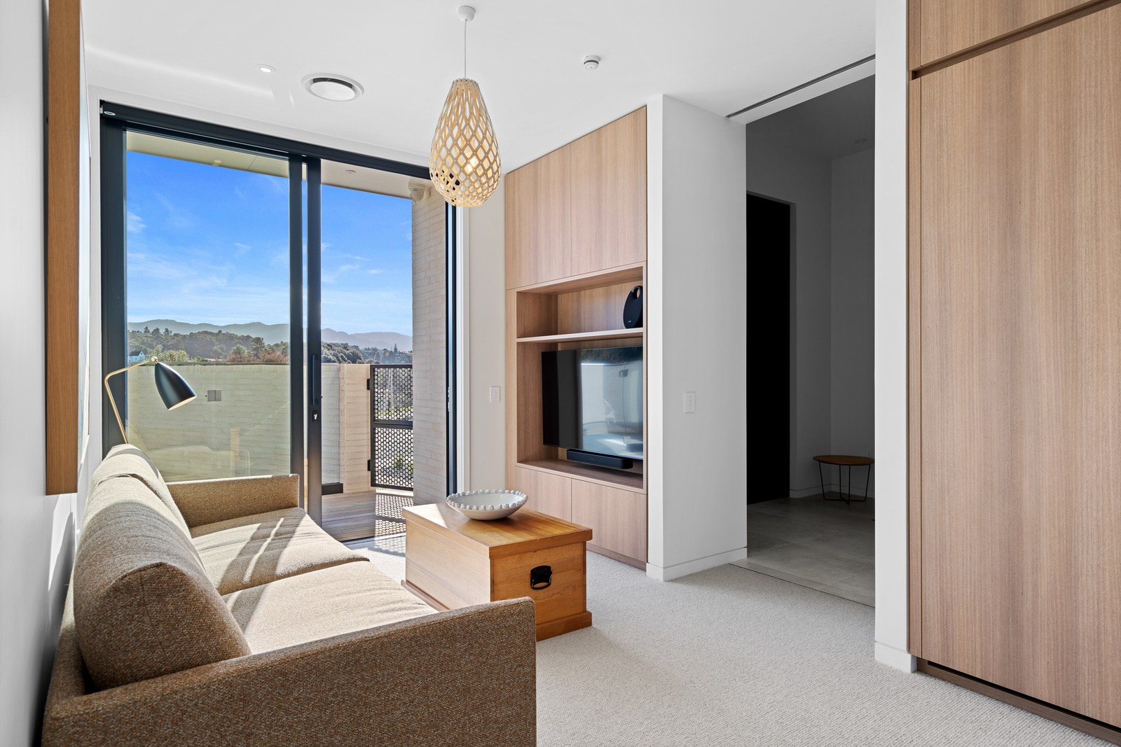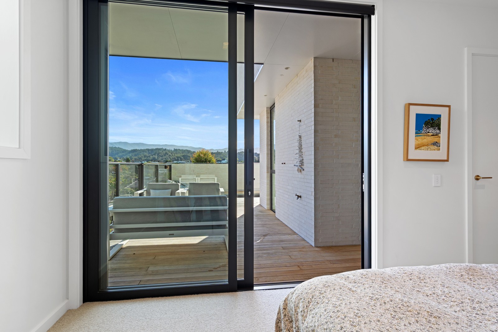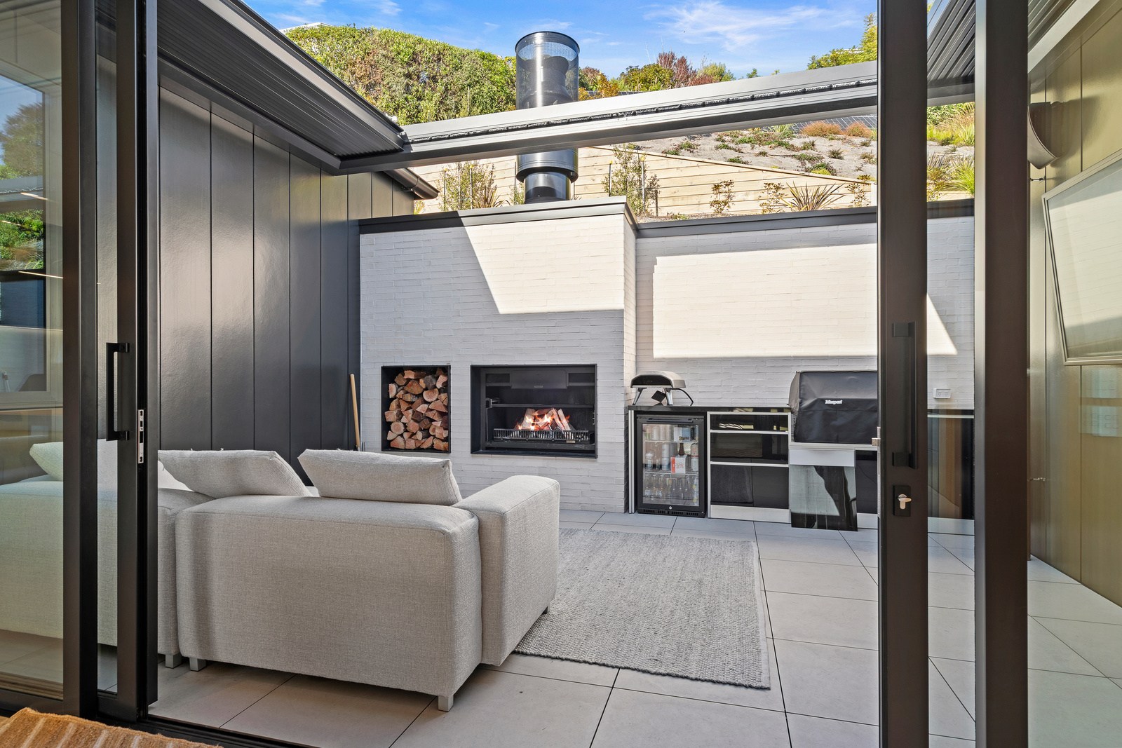 Embedded into a hill high above a beautiful gold-sand beach is this house that references hues of the coast. Custom bricks echo the colour of the sand, cedar cladding that mimics driftwood covers the cantilevered lookout and below is a dark box housing the garage. Of course, there is more to the 400sqm three-bedroom house — aluminium perforated screens that shelter a spa deck, for instance — but the materials all dovetail with each other and with the environment they inhabit. The owners enter through a pared-back cave-like opening on the ground floor. To the right is guest accommodation, including bedrooms, a bathroom, lounge and access to the inground swimming pool. You’ll also find three-car garaging. Turn left and the lift and stairs take you to the first floor and an astonishing variety of places to relax, no matter the weather.