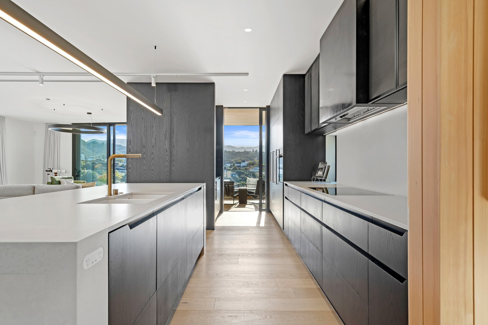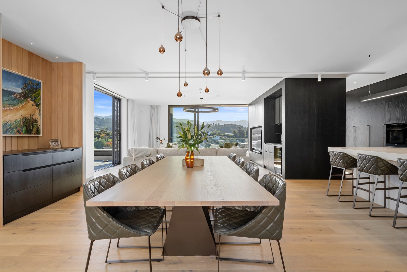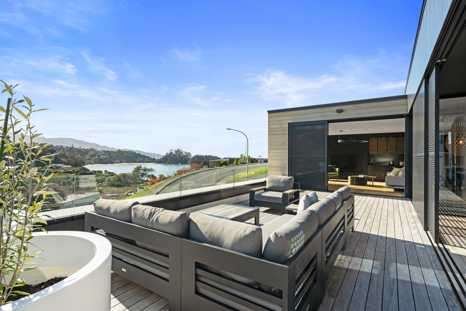 Outdoor living options include a sheltered courtyard, a morning deck, a main deck and that private spa deck accessed through the main-bedroom suite, which also has a walk-in robe and ensuite. On this floor there’s an L-shaped open-plan living space anchored by a kitchen accented with more of the earthy natural tones used on the exterior, plus a walk-in pantry as big as the kitchen itself. You’ll also find an office, snug and laundry. Designer details abound. Coastal views and expert craftsmanship are a match made in heaven.