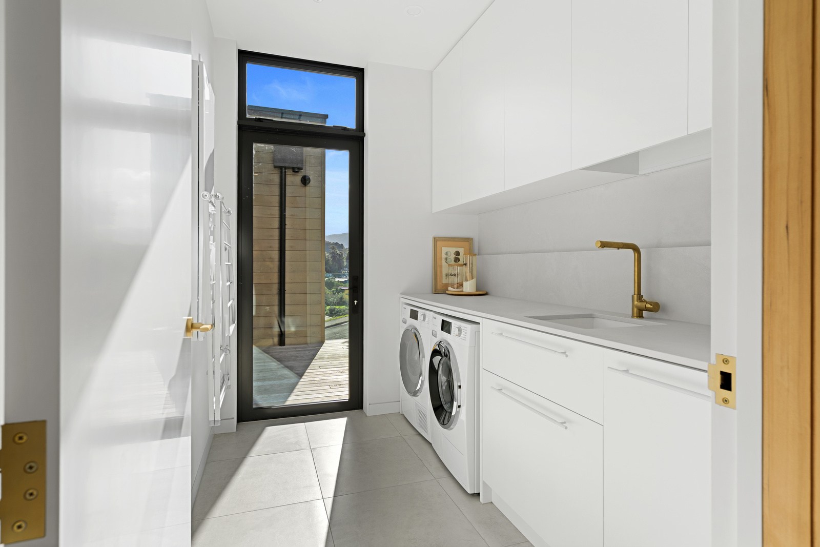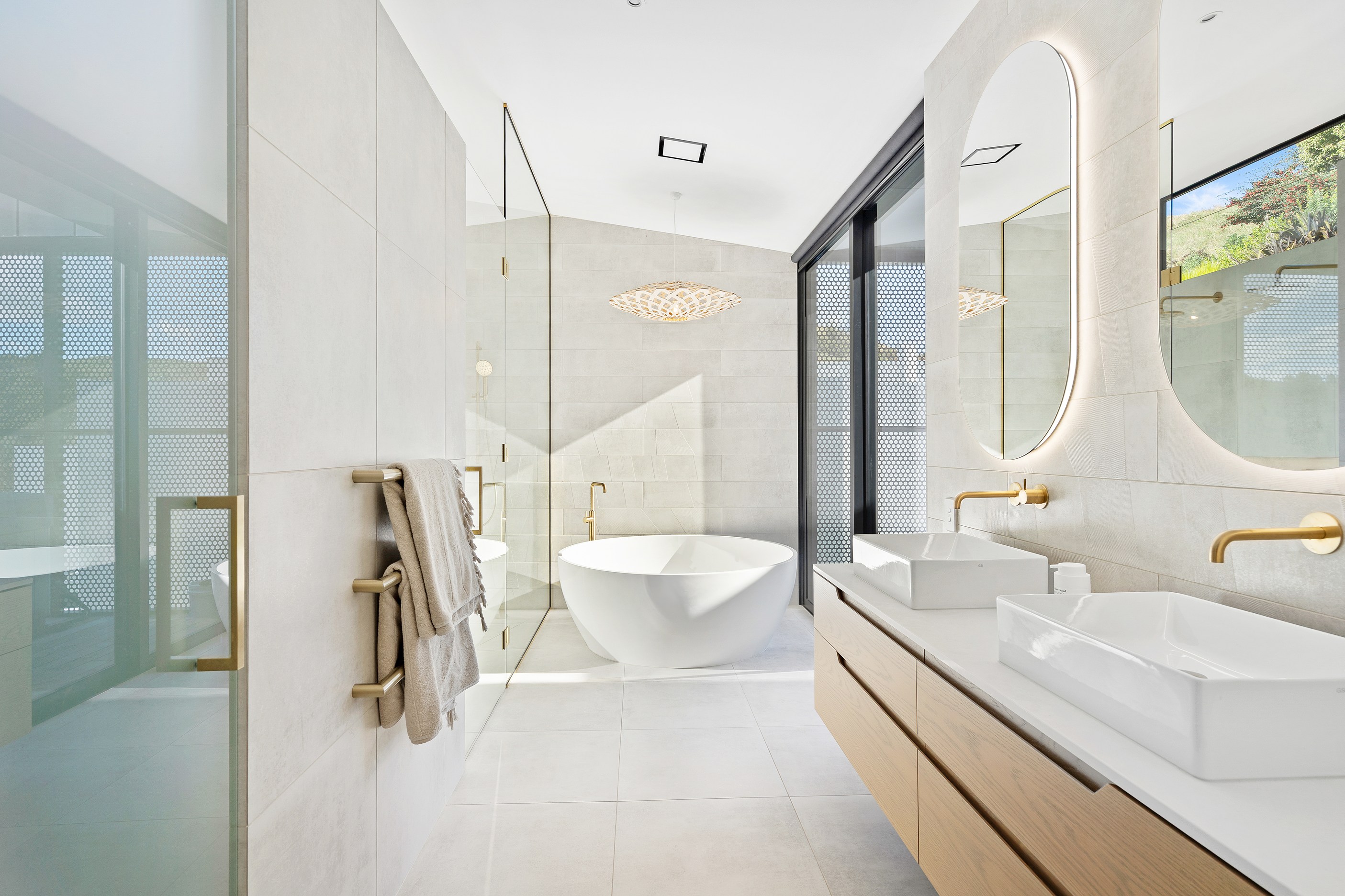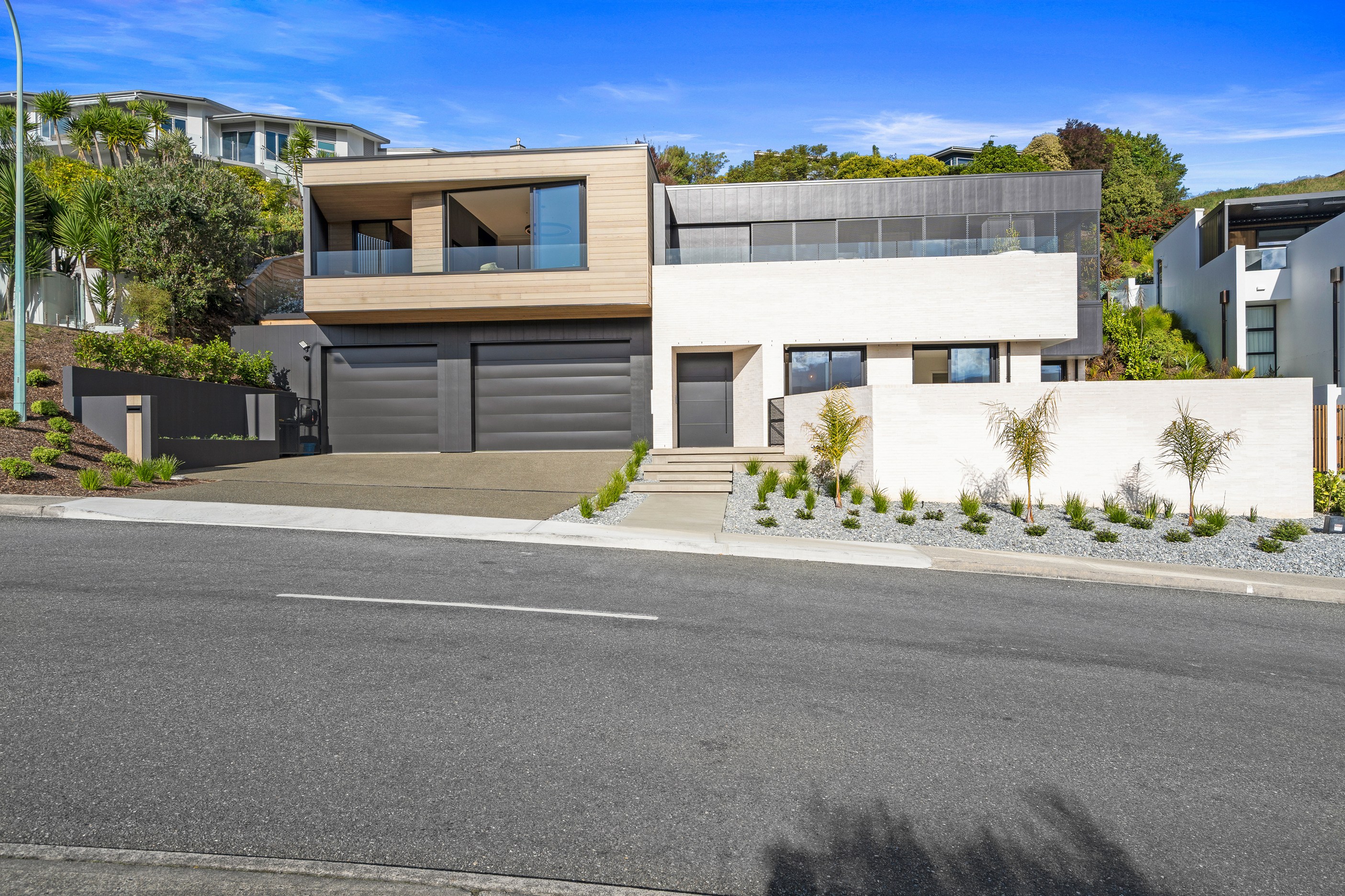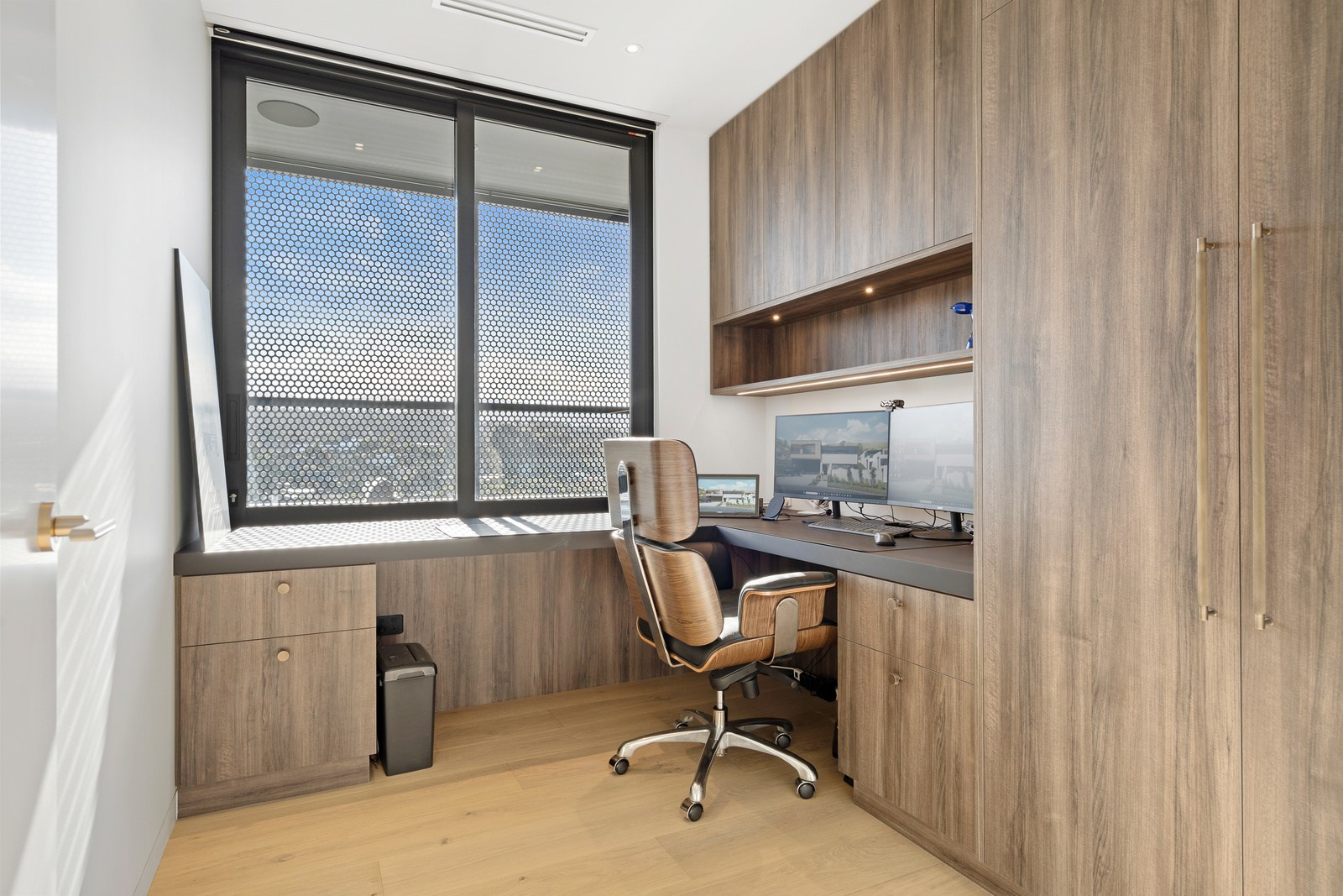 Outdoor living options include a sheltered courtyard, a morning deck, a main deck and that private spa deck accessed through the main-bedroom suite, which also has a walk-in robe and ensuite. On this floor there’s an L-shaped open-plan living space anchored by a kitchen accented with more of the earthy natural tones used on the exterior, plus a walk-in pantry as big as the kitchen itself. You’ll also find an office, snug and laundry. Designer details abound. Coastal views and expert craftsmanship are a match made in heaven.