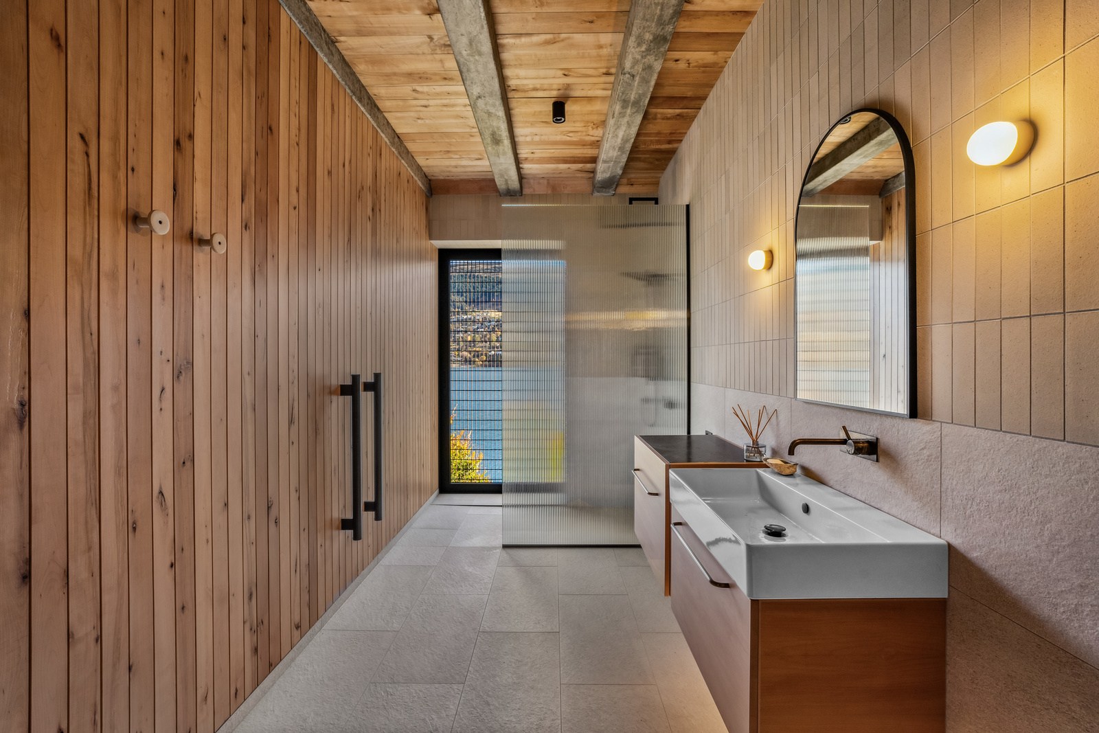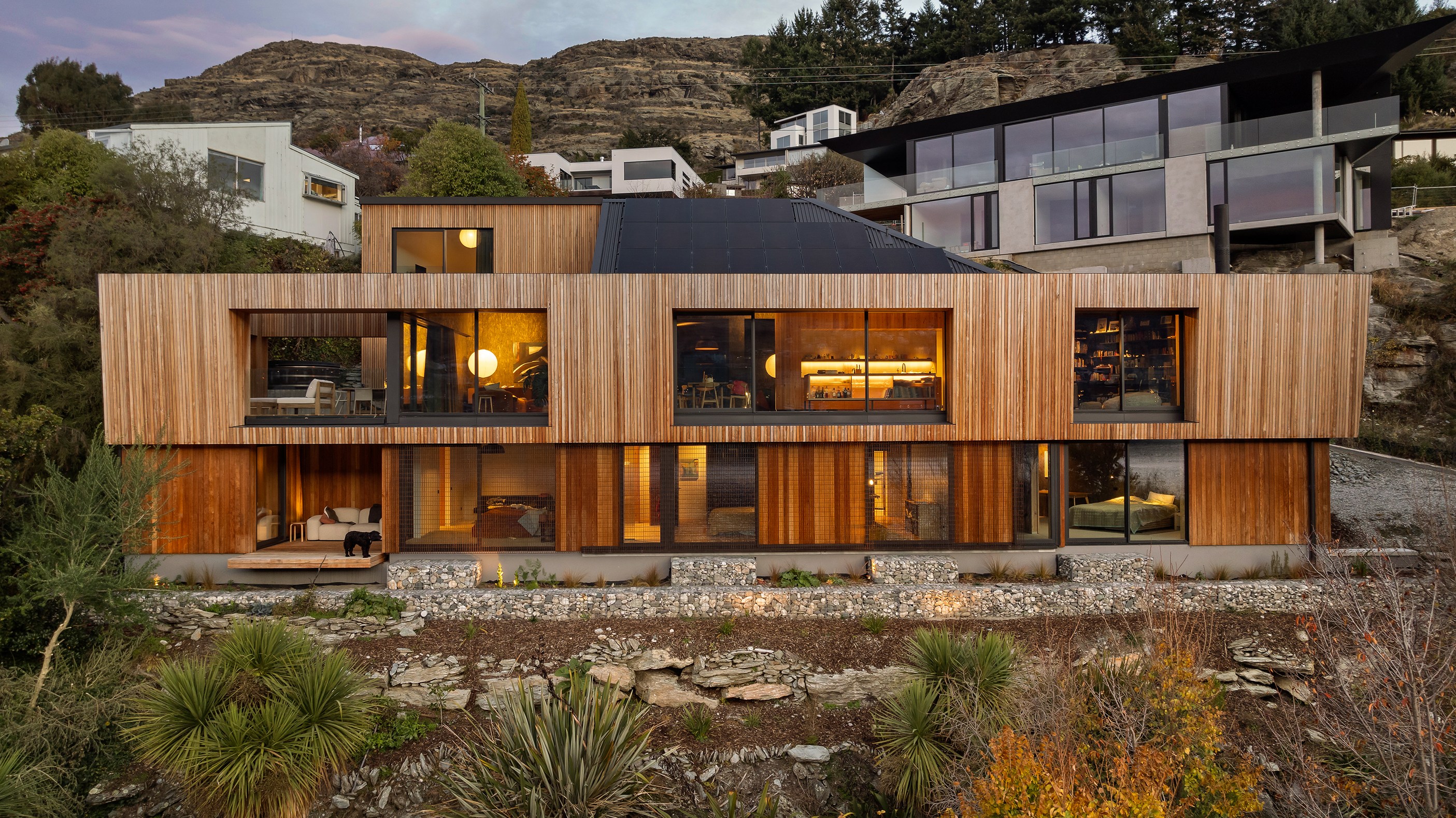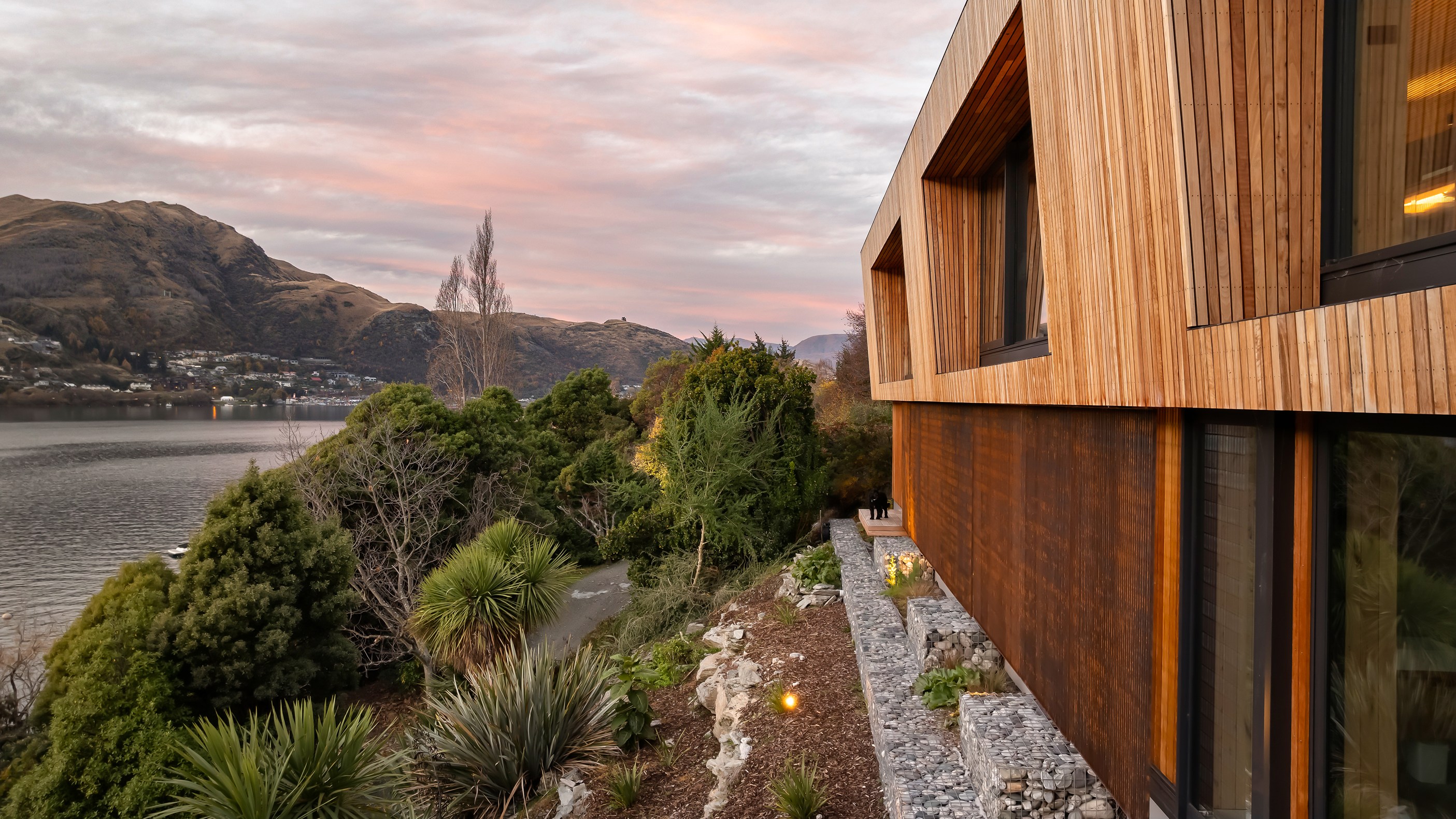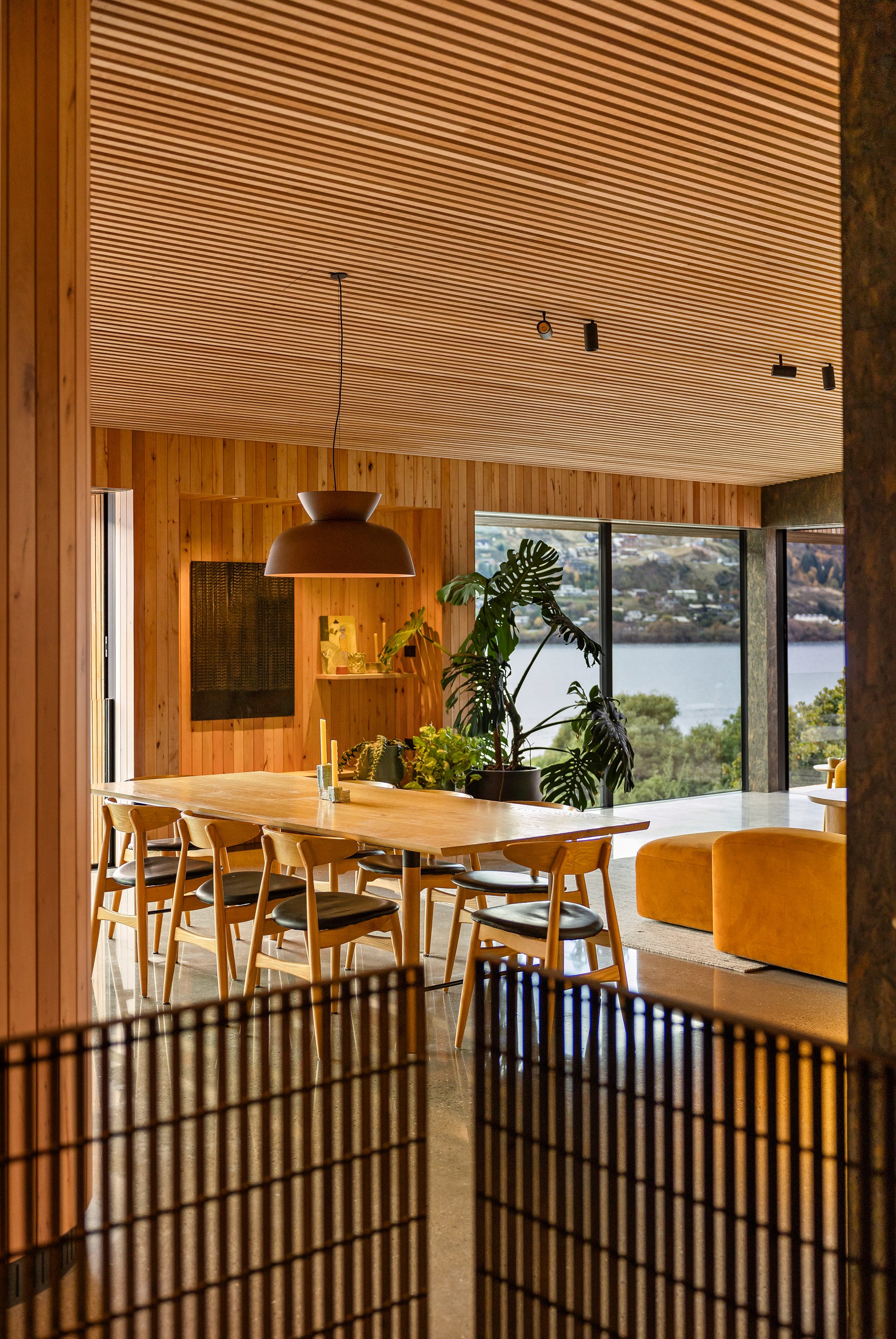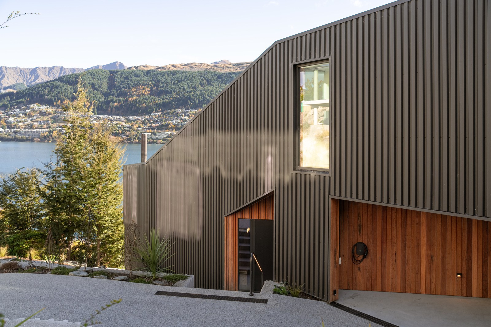 Each of the three levels has its own personality, while rustic timbers and a courtyard formed around schist boulders and steel web forge grating pique the interest, drawing inspiration from New Zealand’s agricultural heritage. Continuity and cohesion come courtesy of recycled Australian timber cladding, soffits and rainscreens, and a roof plane mimics the contours of the landscape. No doubt, this is a home of great beauty, but it also excels in myriad other ways. It’s warm, healthy, energy efficient and highly automated. Locally manufactured prefabricated wall and roof panels were utilised to improve efficiency. Passive design principals were adhered to, and the house features include an air-to-water heat pump with costs offset by solar panels, carefully orientated windows with triple glazing, and a mechanical ventilation system. These add up to a home that will stand the test of time.