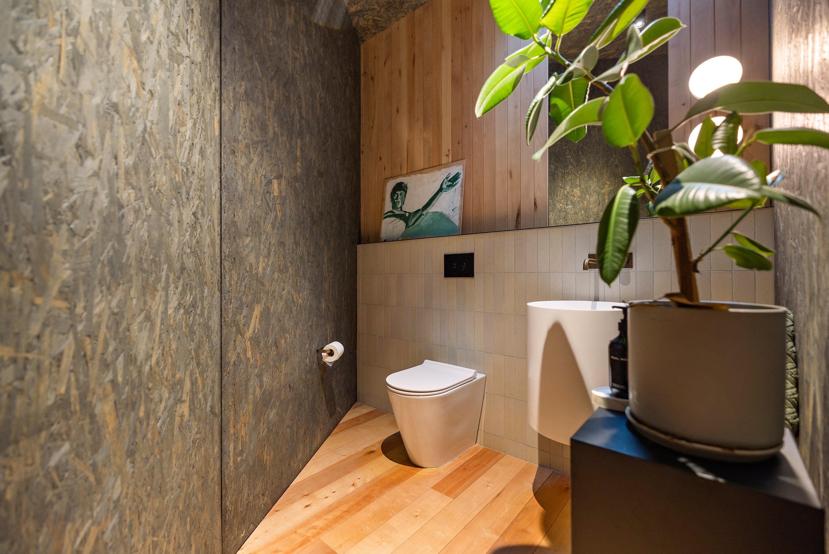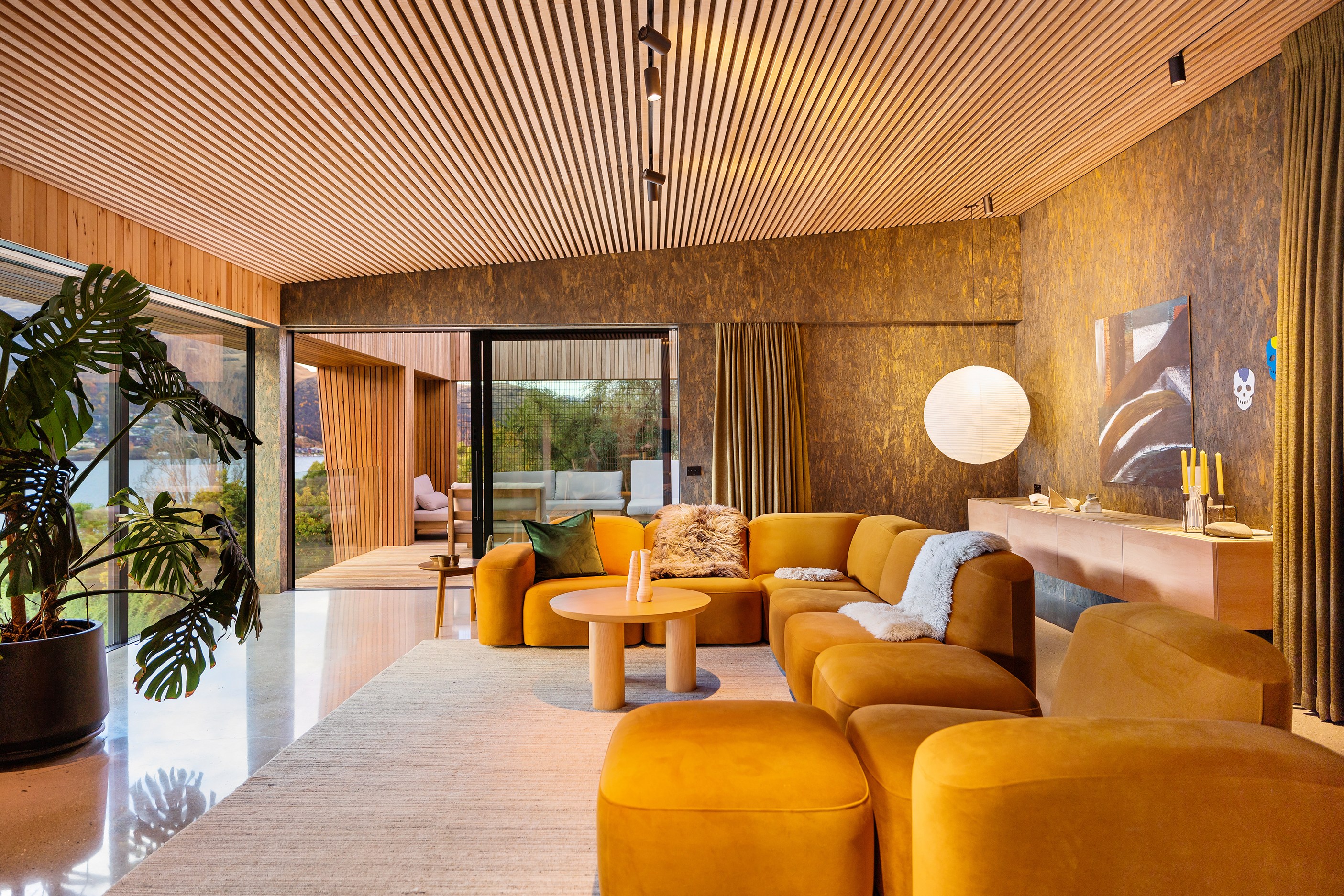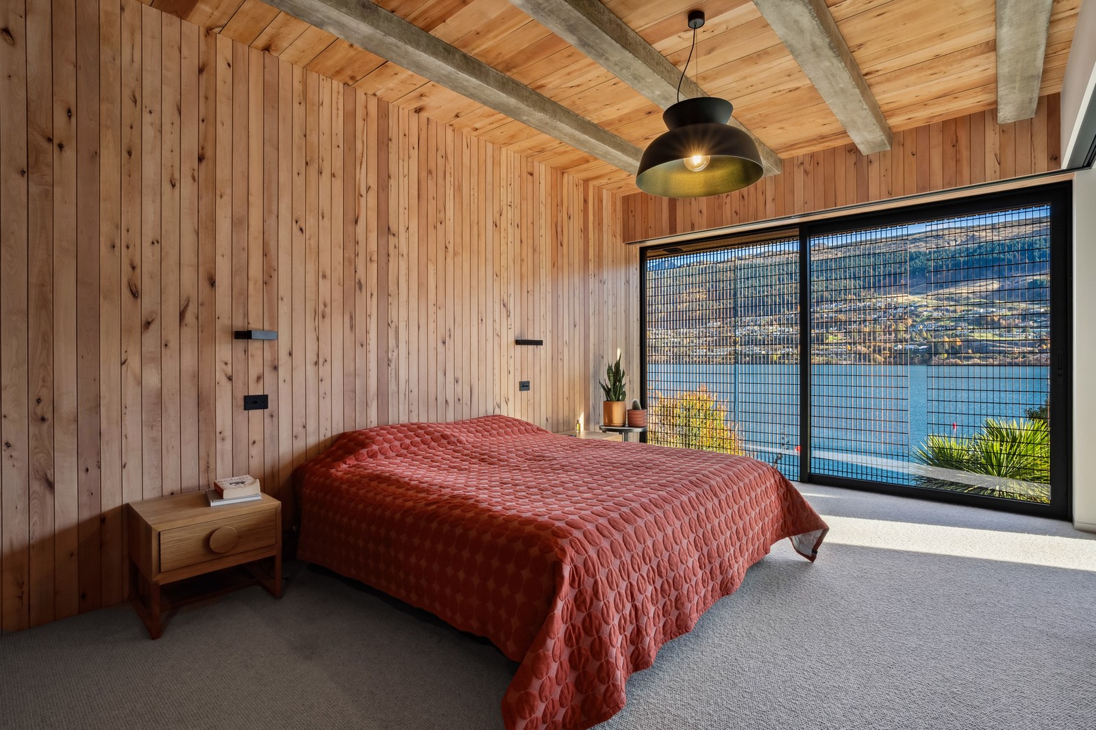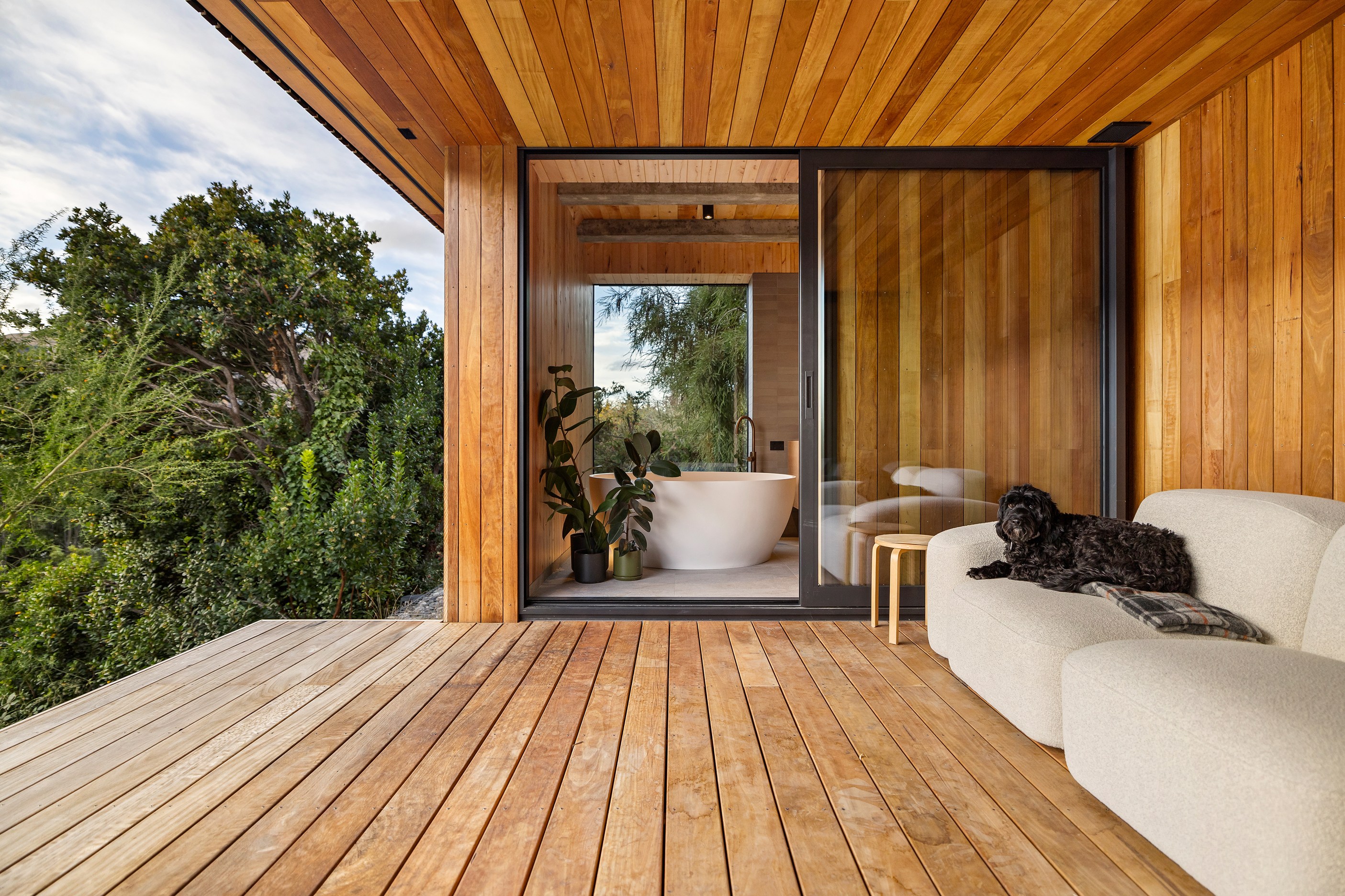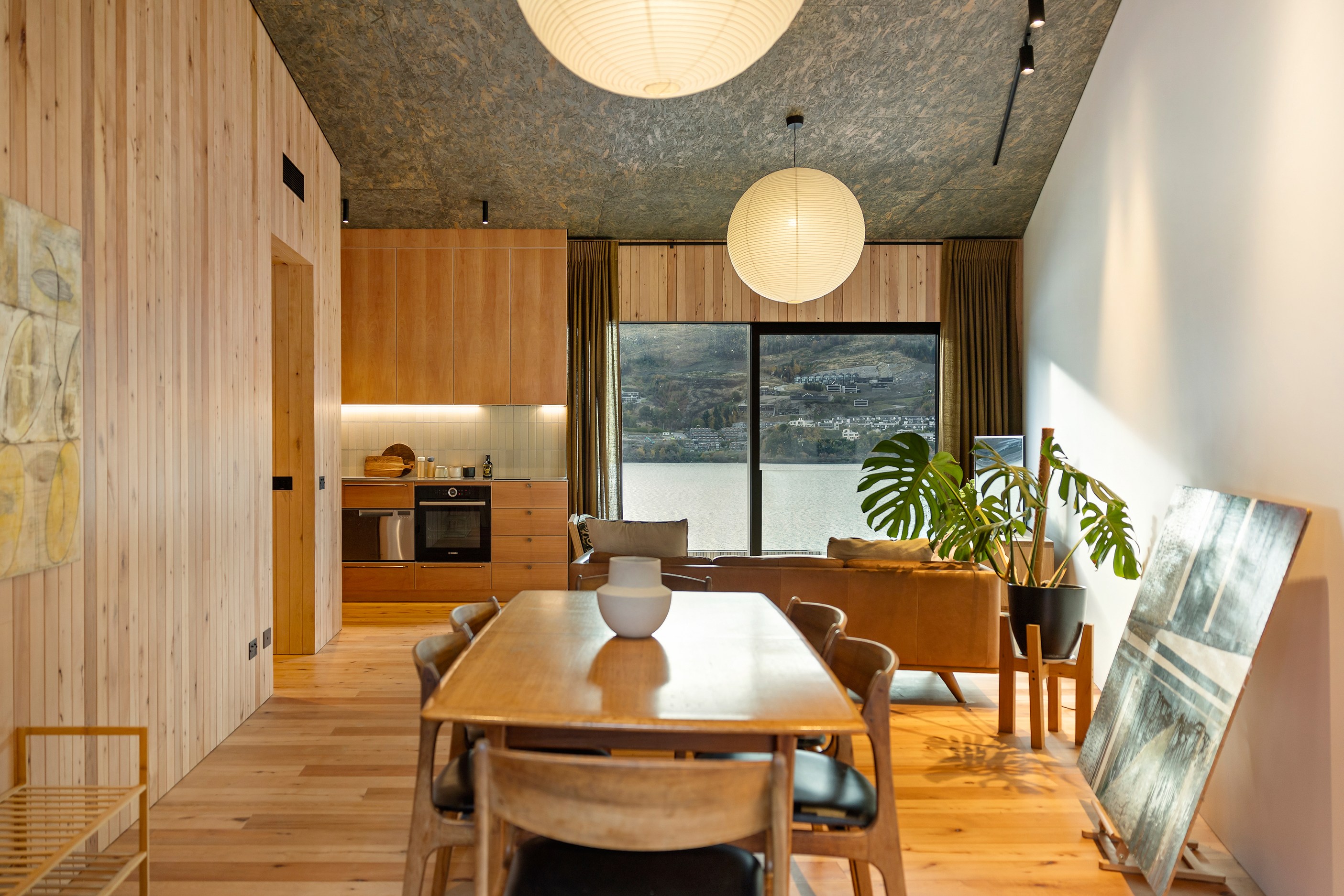 Each of the three levels has its own personality, while rustic timbers and a courtyard formed around schist boulders and steel web forge grating pique the interest, drawing inspiration from New Zealand’s agricultural heritage. Continuity and cohesion come courtesy of recycled Australian timber cladding, soffits and rainscreens, and a roof plane mimics the contours of the landscape. No doubt, this is a home of great beauty, but it also excels in myriad other ways. It’s warm, healthy, energy efficient and highly automated. Locally manufactured prefabricated wall and roof panels were utilised to improve efficiency. Passive design principals were adhered to, and the house features include an air-to-water heat pump with costs offset by solar panels, carefully orientated windows with triple glazing, and a mechanical ventilation system. These add up to a home that will stand the test of time.