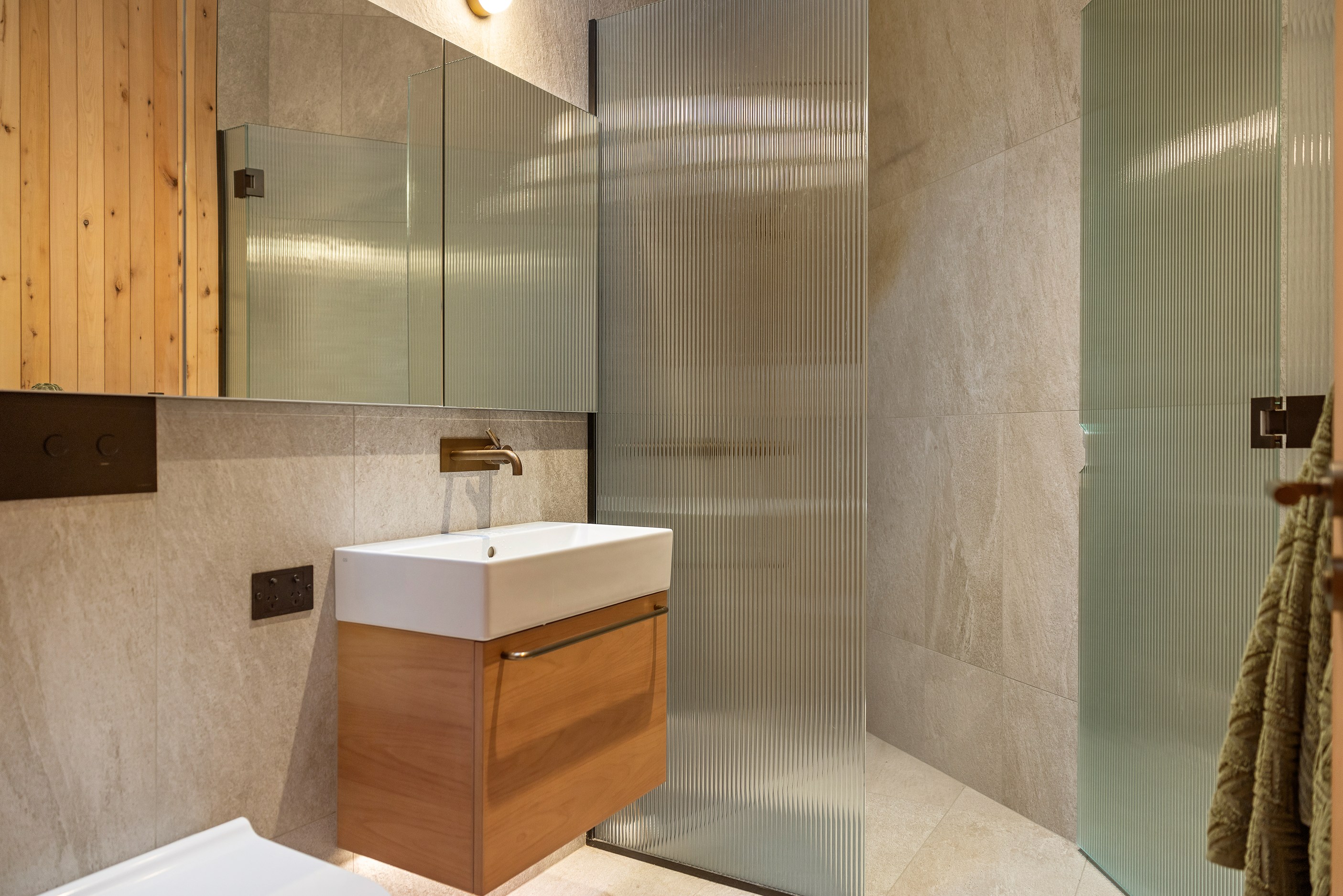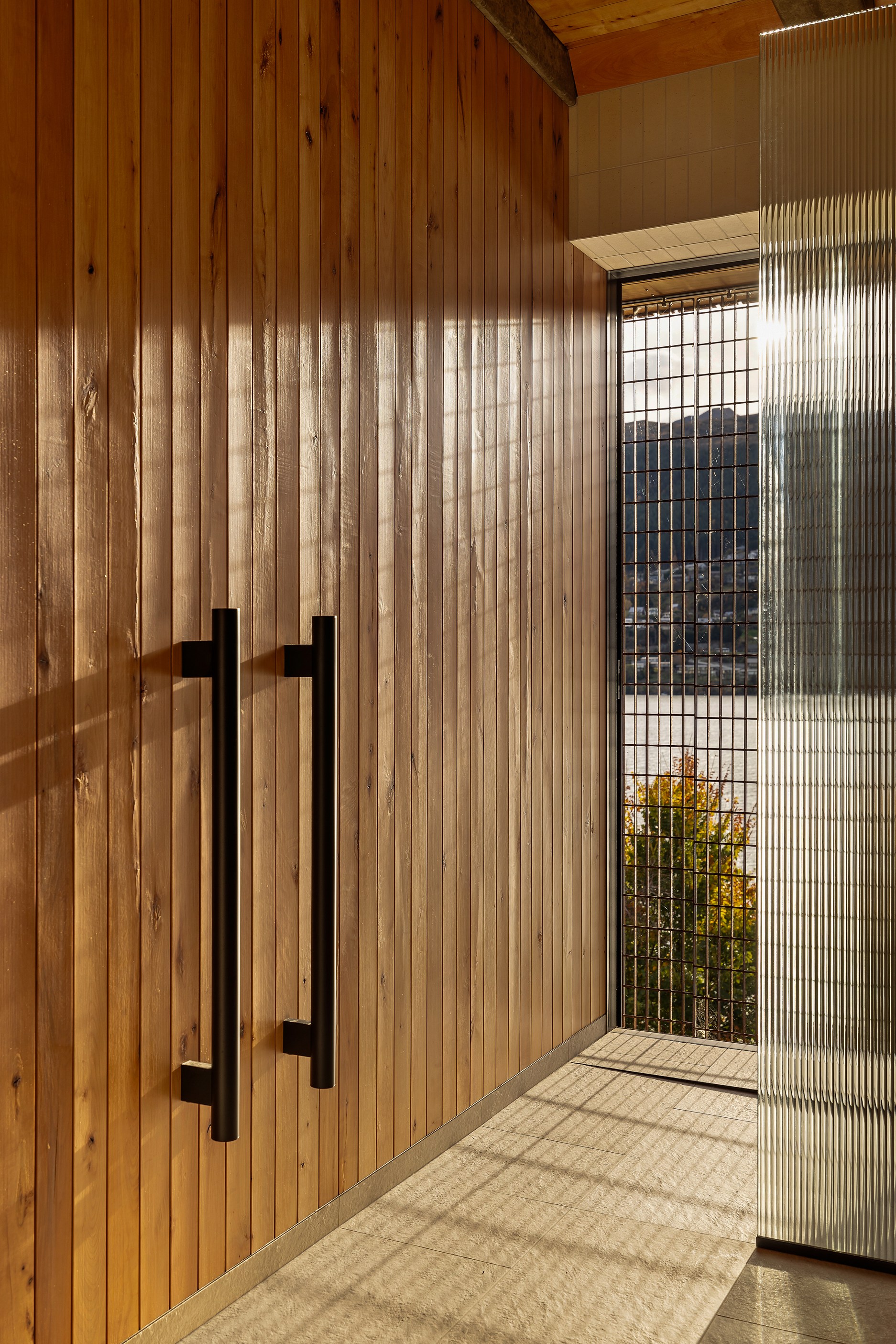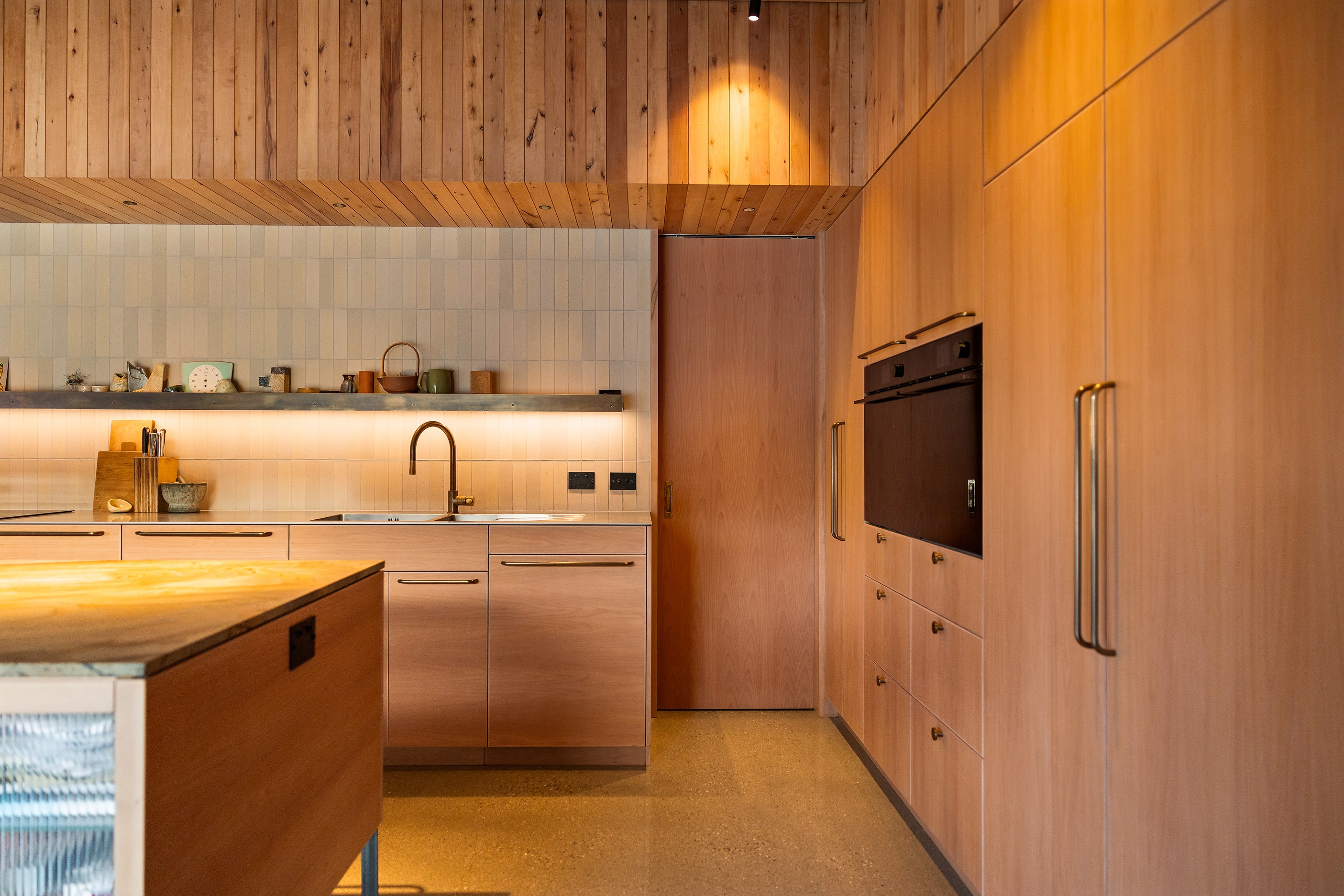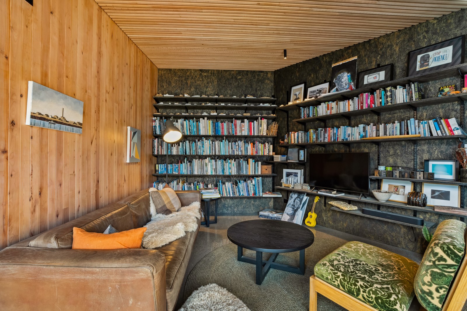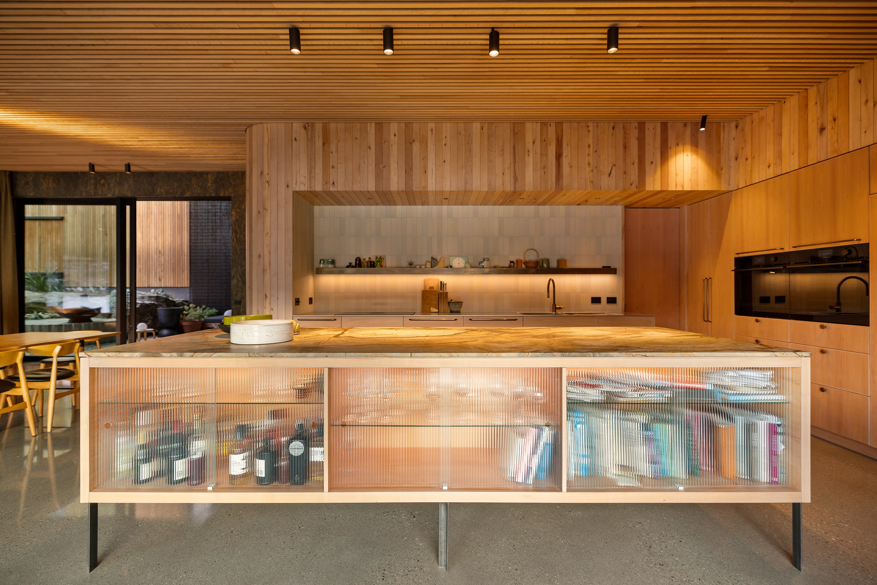 Each of the three levels has its own personality, while rustic timbers and a courtyard formed around schist boulders and steel web forge grating pique the interest, drawing inspiration from New Zealand’s agricultural heritage. Continuity and cohesion come courtesy of recycled Australian timber cladding, soffits and rainscreens, and a roof plane mimics the contours of the landscape. No doubt, this is a home of great beauty, but it also excels in myriad other ways. It’s warm, healthy, energy efficient and highly automated. Locally manufactured prefabricated wall and roof panels were utilised to improve efficiency. Passive design principals were adhered to, and the house features include an air-to-water heat pump with costs offset by solar panels, carefully orientated windows with triple glazing, and a mechanical ventilation system. These add up to a home that will stand the test of time.