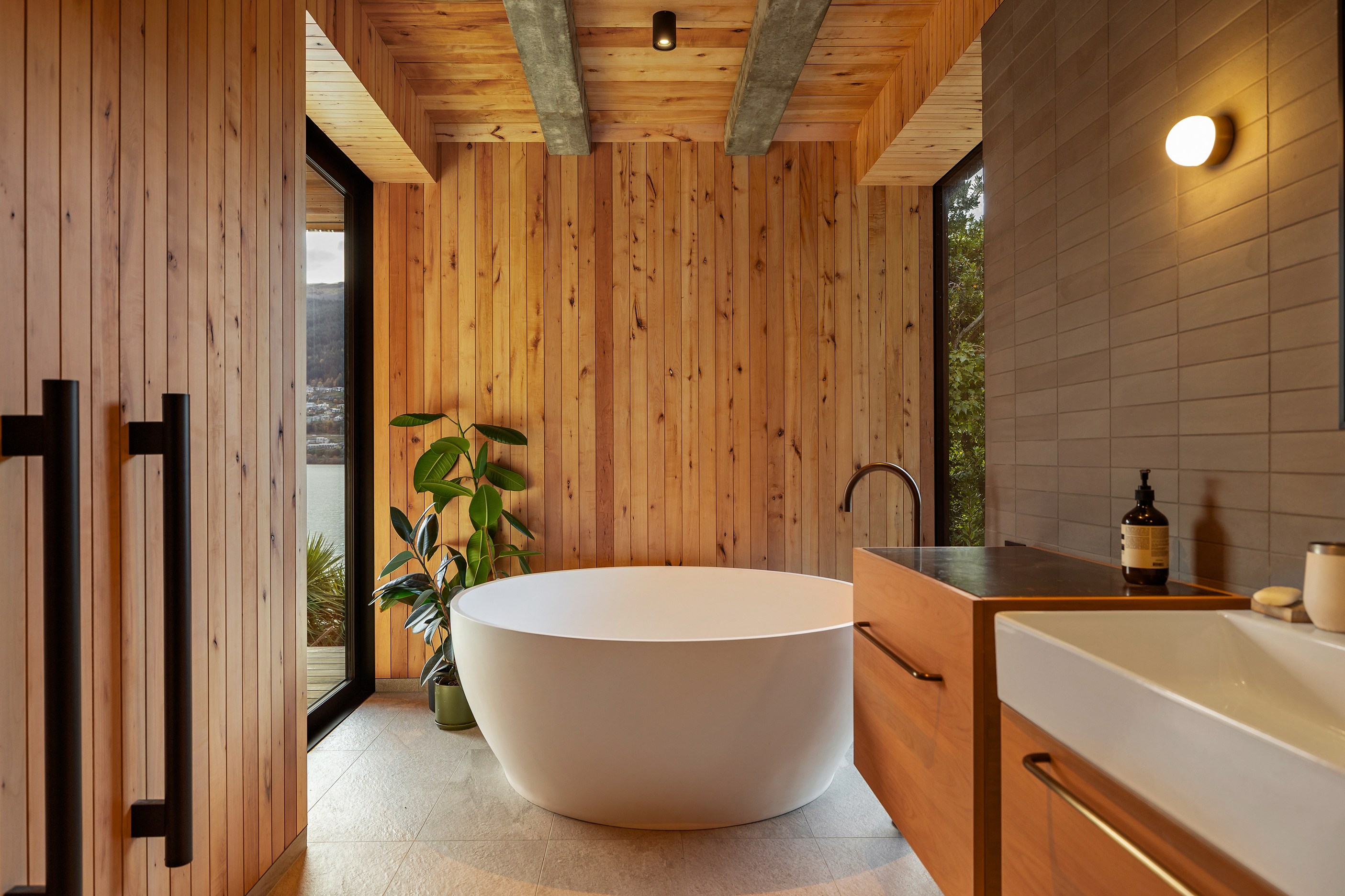 It took more than a decade of thought and planning for this raw, edgy home to emerge from the drawing board. The steep rocky, triangleshaped site offered rich rewards in the form of breathtaking lake views, so design and execution were paramount. There’s no doubt the multi-level 450sqm home has captured these vistas and more. You’ll find five bedrooms, one in a self-contained guest studio, multiple outdoor living areas and richhued timber walls, floors, doors and ceilings crafted from sustainable local beech. For the builder, constructing an architect’s family home on “what is best described as an architect’s site” took exceptional precision and was a real privilege.