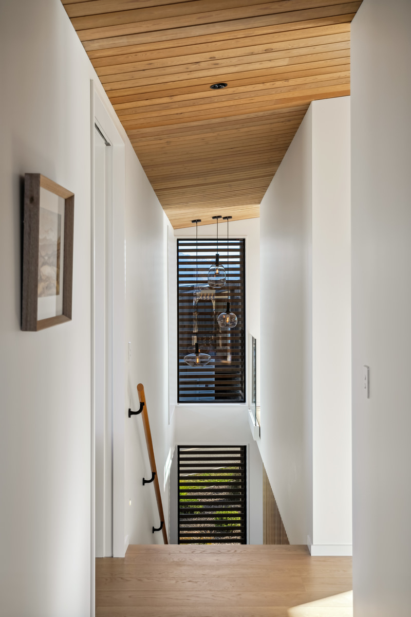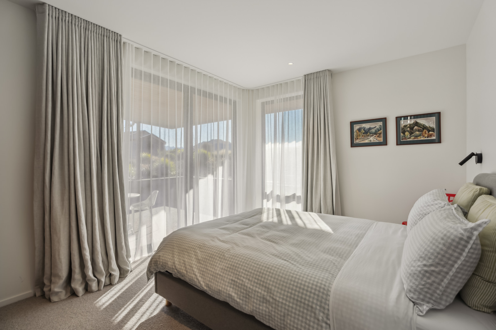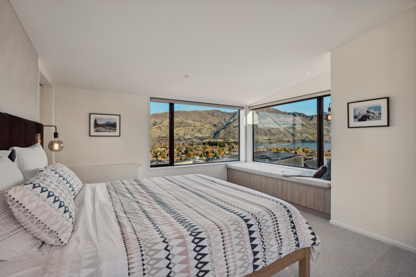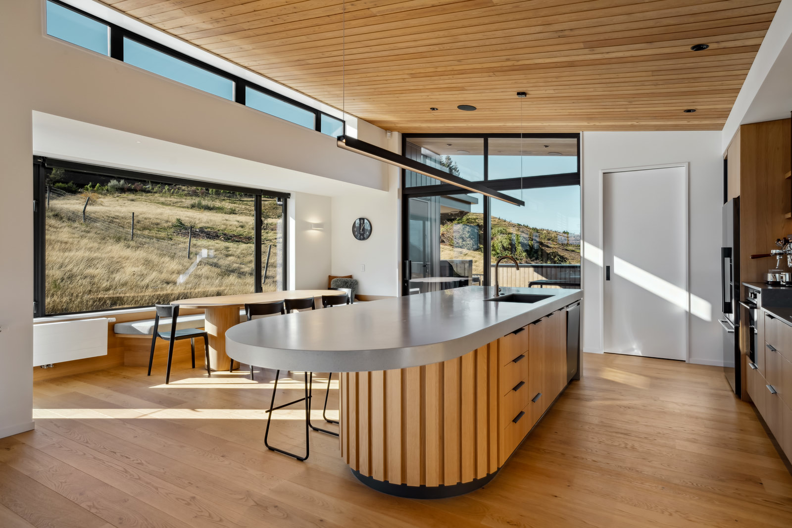 There are quiet corners too, perfect for reading, relaxing or simply soaking up the view. Timber-lined walls and ceilings give the interior a natural, cabin-like feel, softening the striking angles and lending a grounded, enduring quality. Carefully placed glazing ensures every room captures spectacular views over Wānaka and the surrounding landscape. Purpose-built for family holidays, the home features a bunk room, window seats and informal lounge zones. Underfloor heating and heat-pump radiators keep things cosy in winter, while smart automation allows the owners to manage heating and security remotely. Designed for ease of use but rich in detail, this is a retreat made for gathering and creating lasting memories.