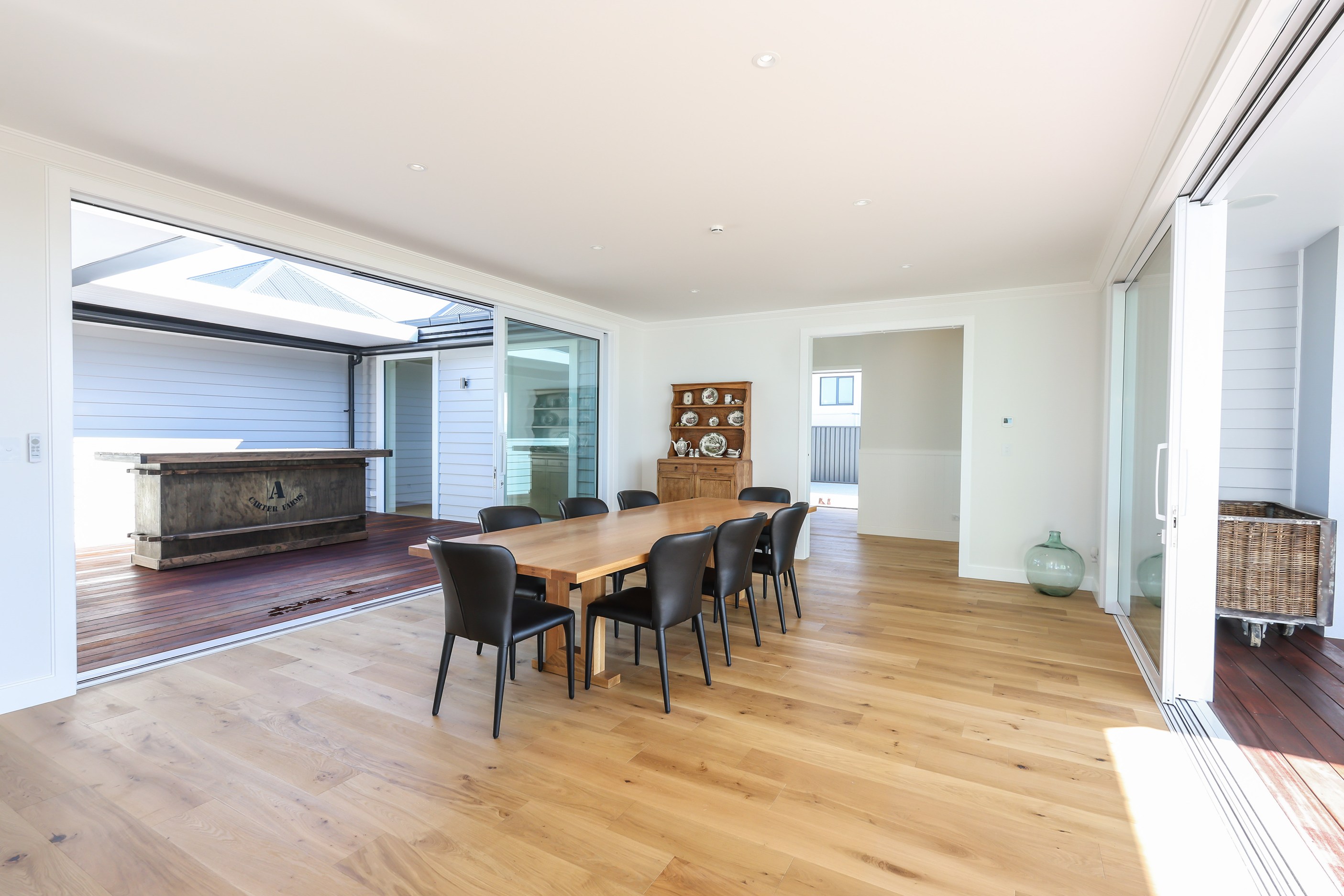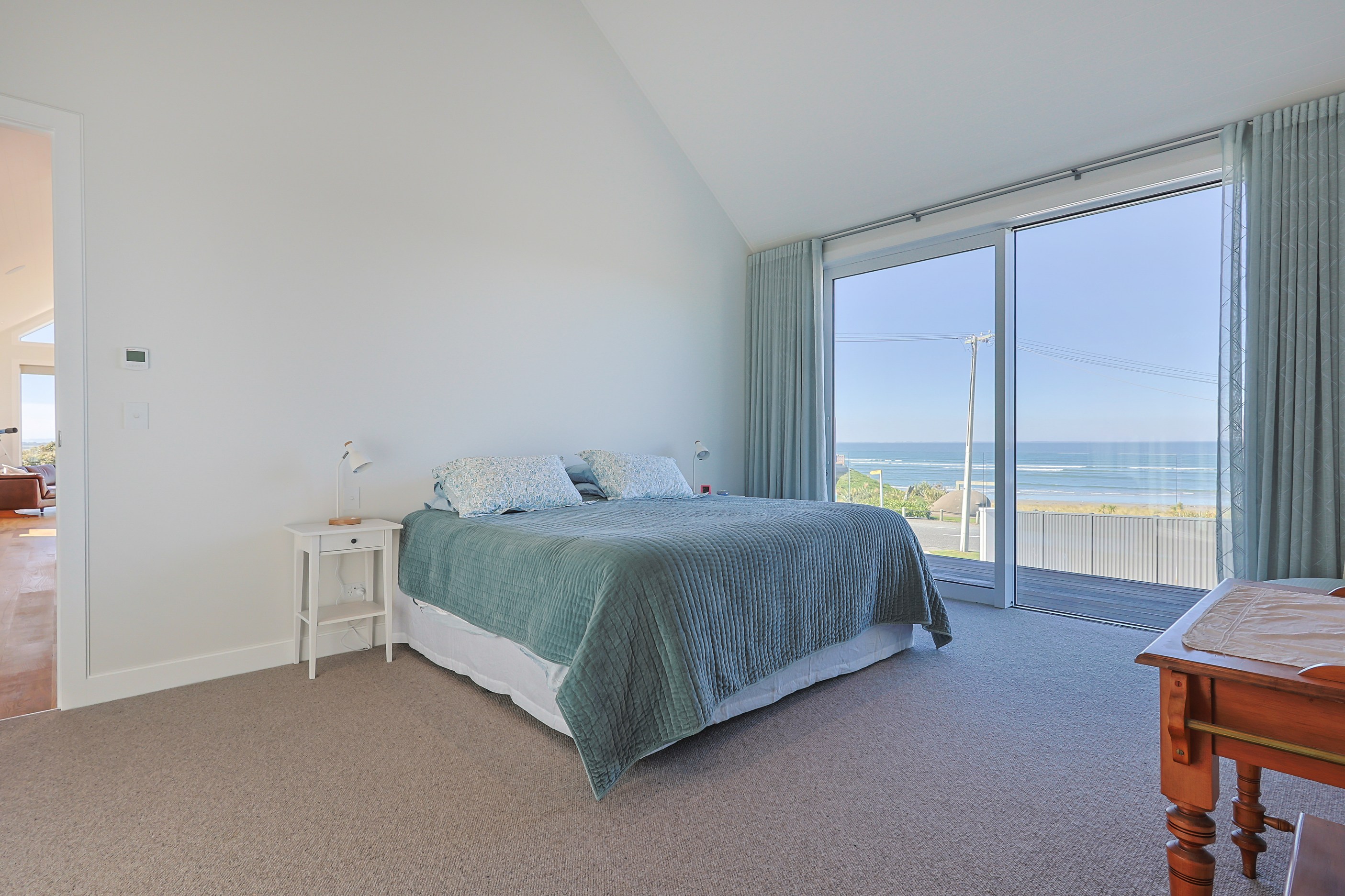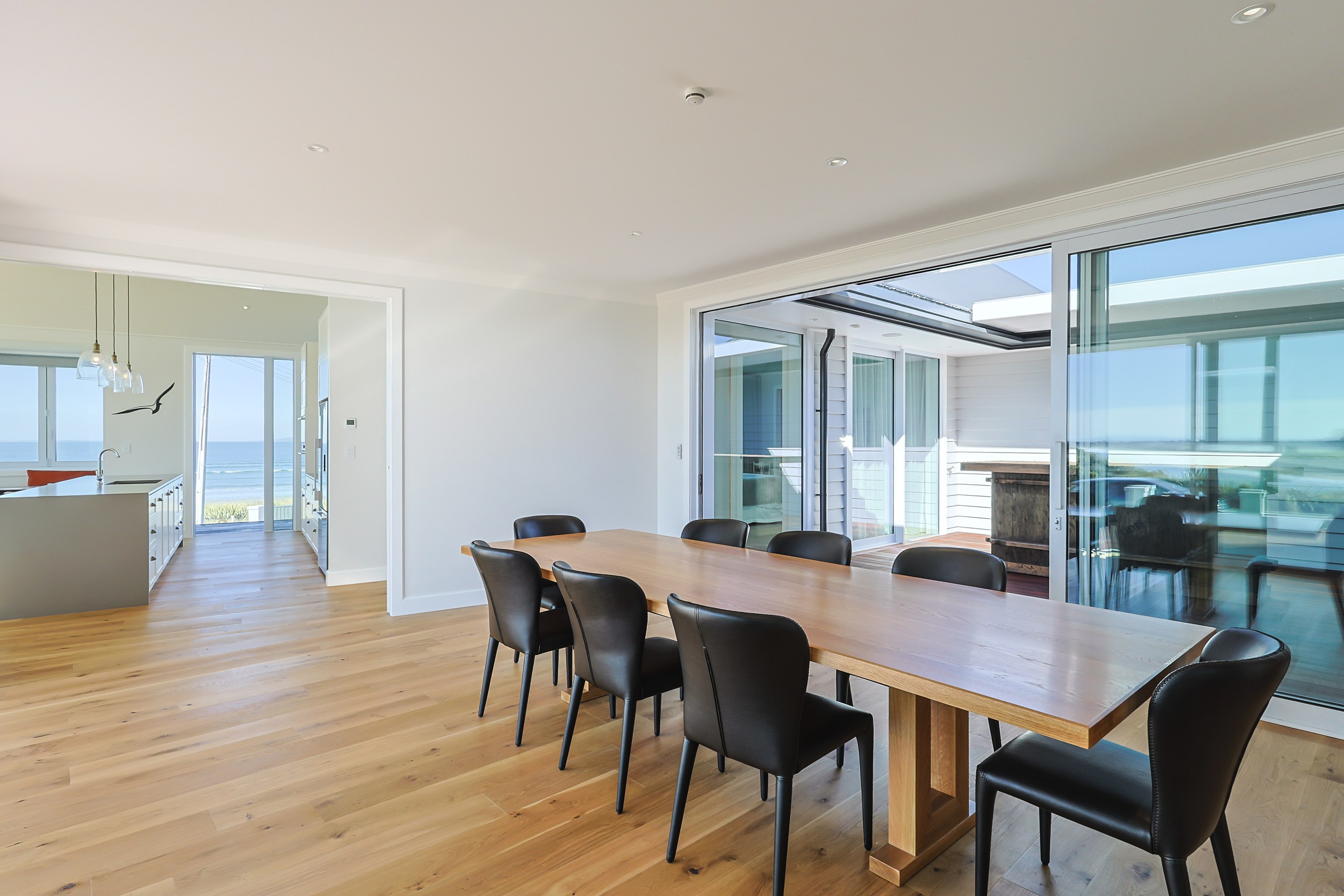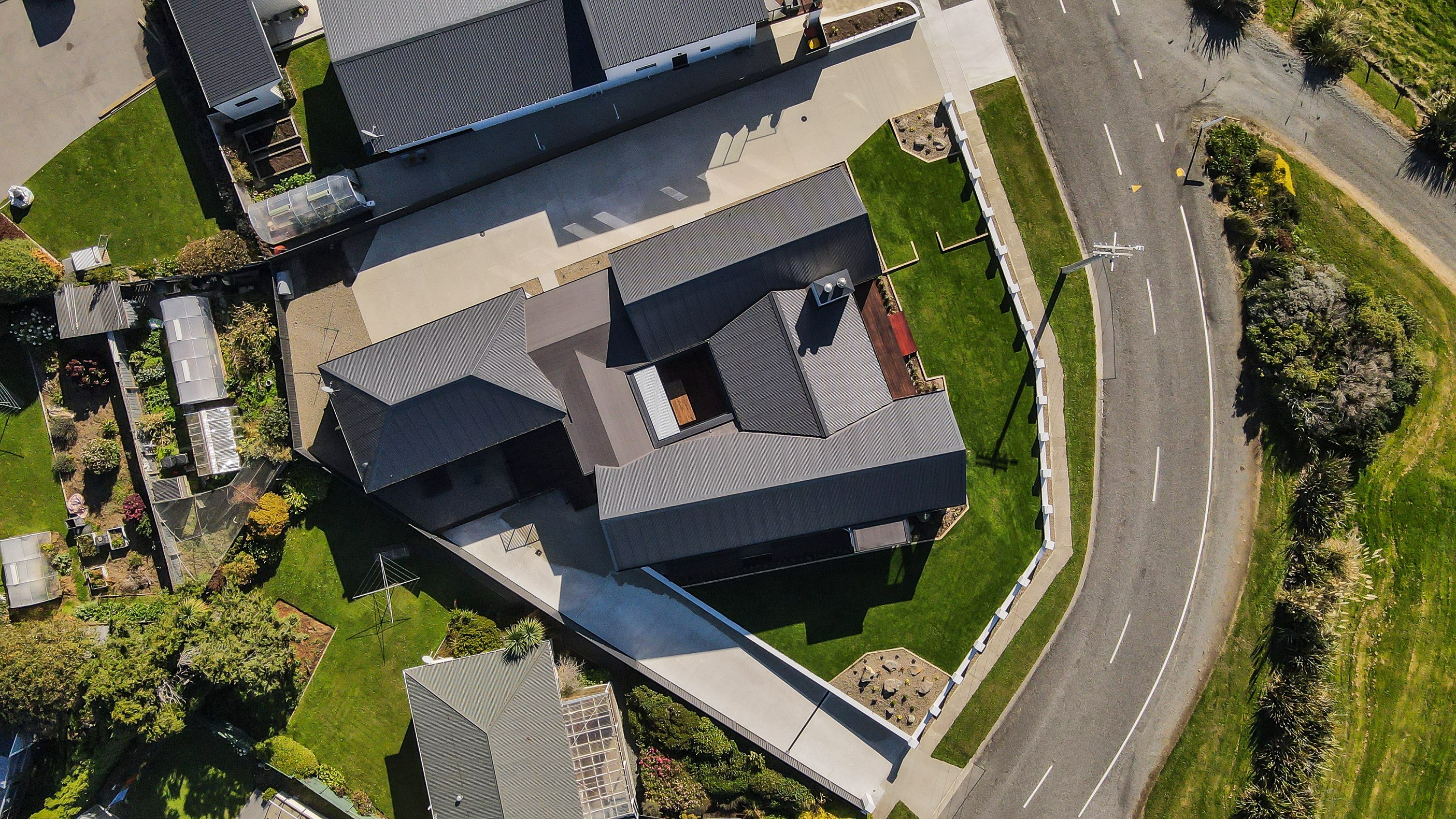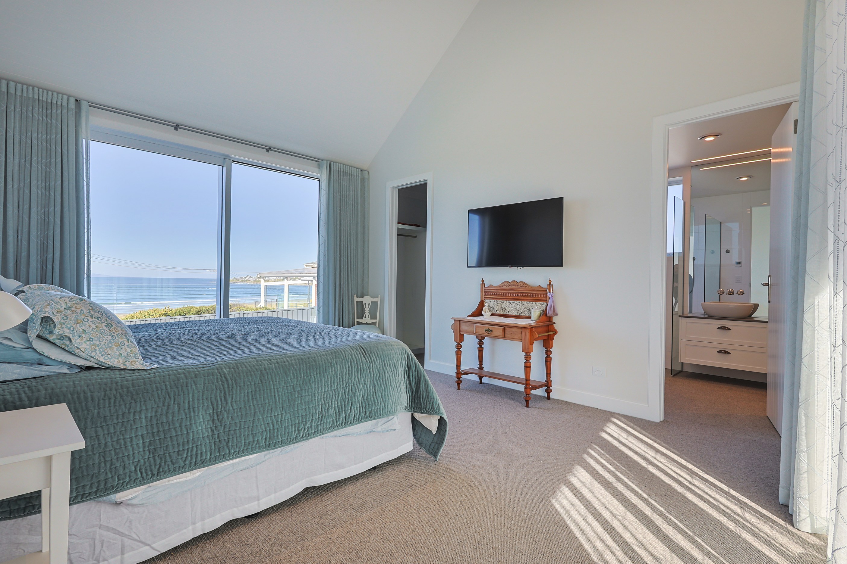 How do you do justice to a wedge-shaped site with 180-degree sea views? Exactly what the owners of this house did — with the help of trusted local builders. This 366sqm weatherboard home comprises two linked pavilions that open fan-like to views of Taramea Bay and the Aparima Estuary. Thoughtful, clever architecture, including use of coast-hardy materials, provides beautiful outdoor places in which to drink in the views. Out front a sheltered deck with an outdoor fire invites year-round relaxation, but there are plenty of other tucked-away nooks. One is a spa deck out the back; another is a central courtyard with louvre roof – an oasis at the heart of the home.
