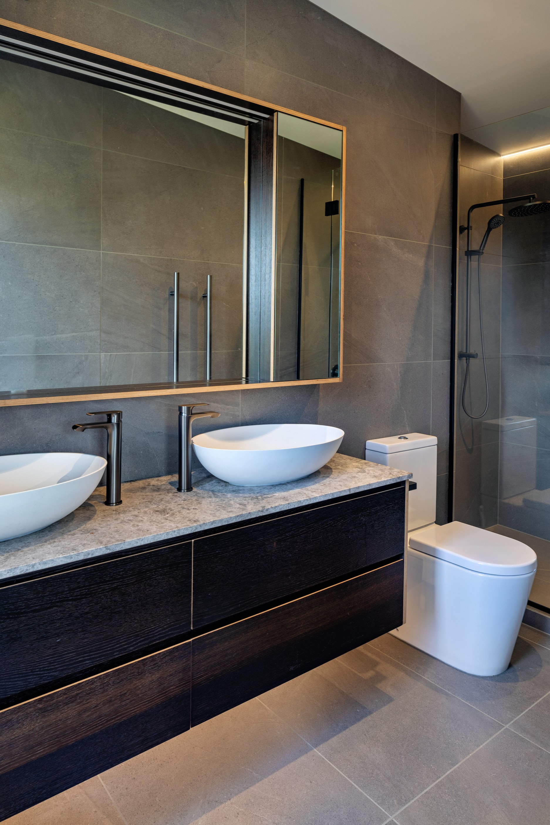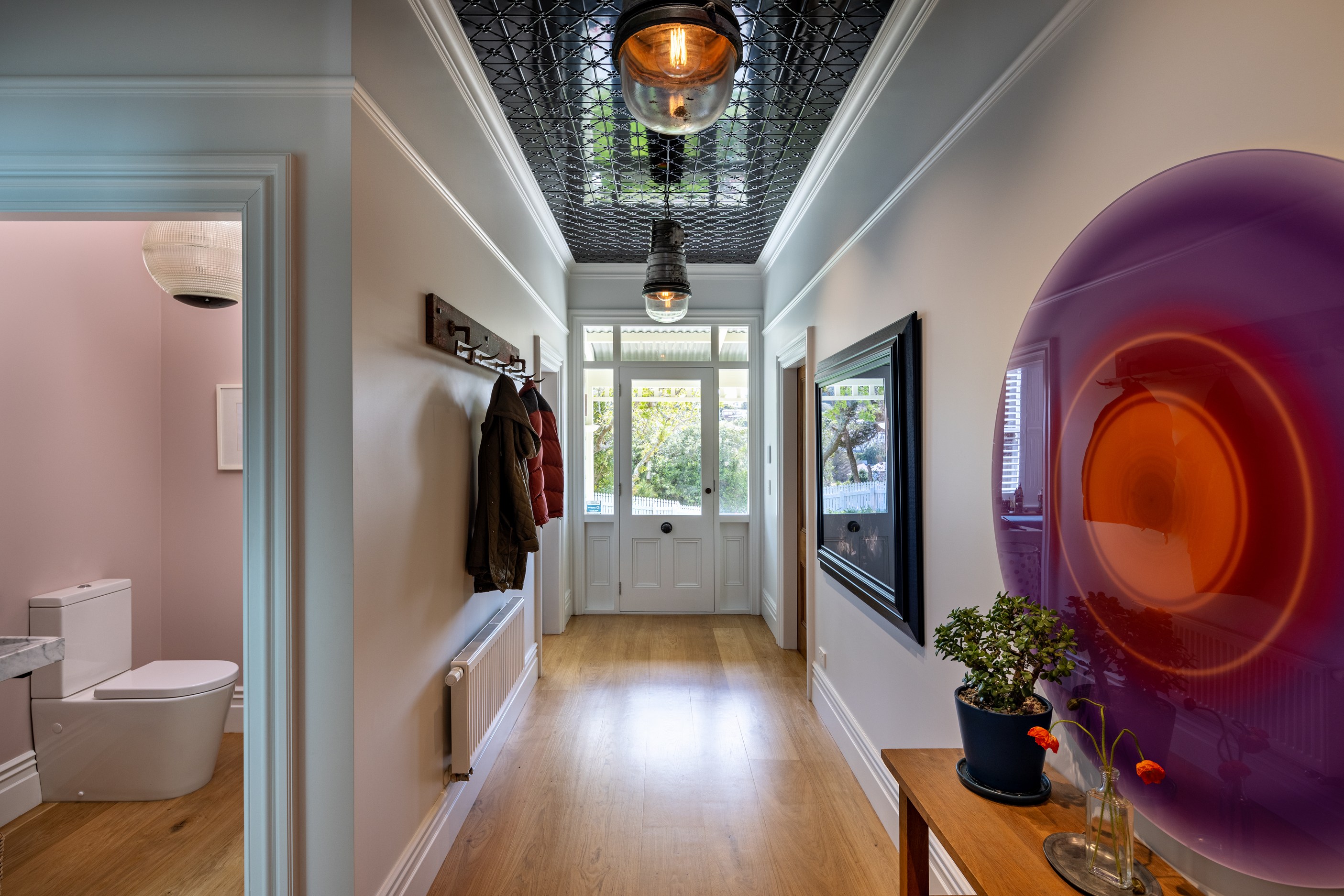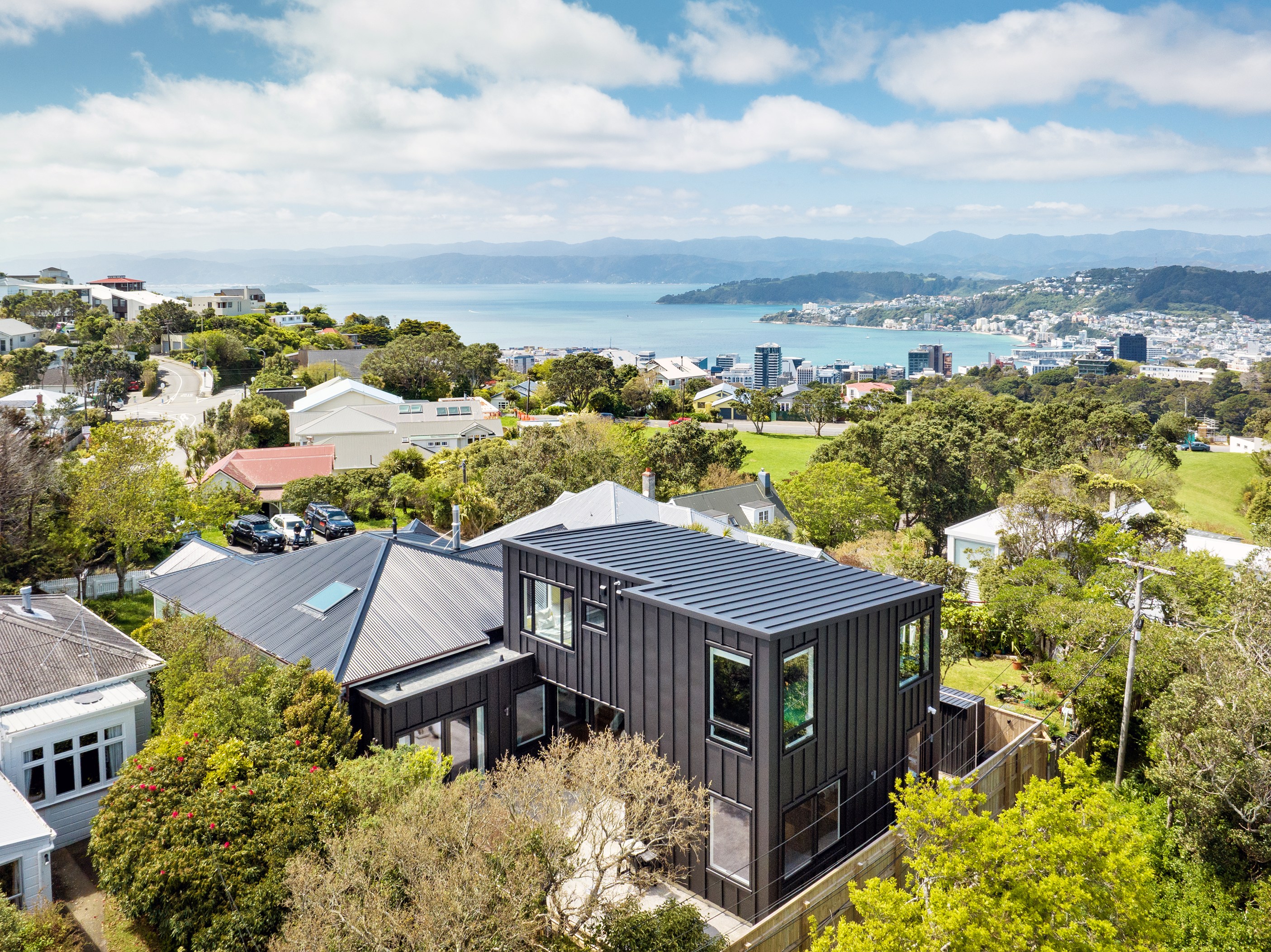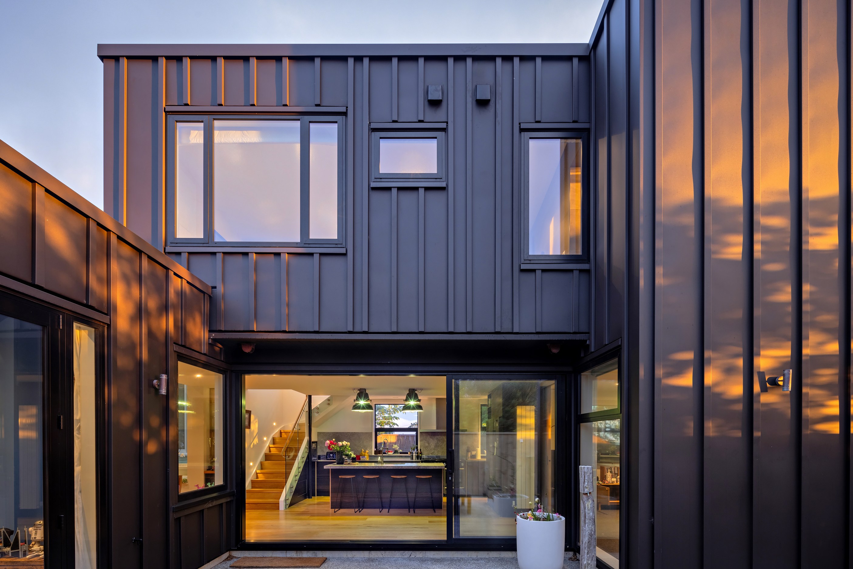This renovation and extension project covers every base for the people who live here. The family now has a new place to gather, a revamped formal lounge, a sheltered courtyard and upstairs bedroom suites. There’s plenty of hang-out space for both adults and teenagers, and from upstairs they can enjoy sweeping views that include the Hutt Valley and Wellington’s harbour and heads. The project started with a Queen Anne-style villa on an elevated site. An extension was required to cater for everyone and their interests. How best, then, to achieve it? An addition in keeping with the style, or something completely different? The owners went with the latter, an architecturally distinct form that’s as intriguing as it is striking.